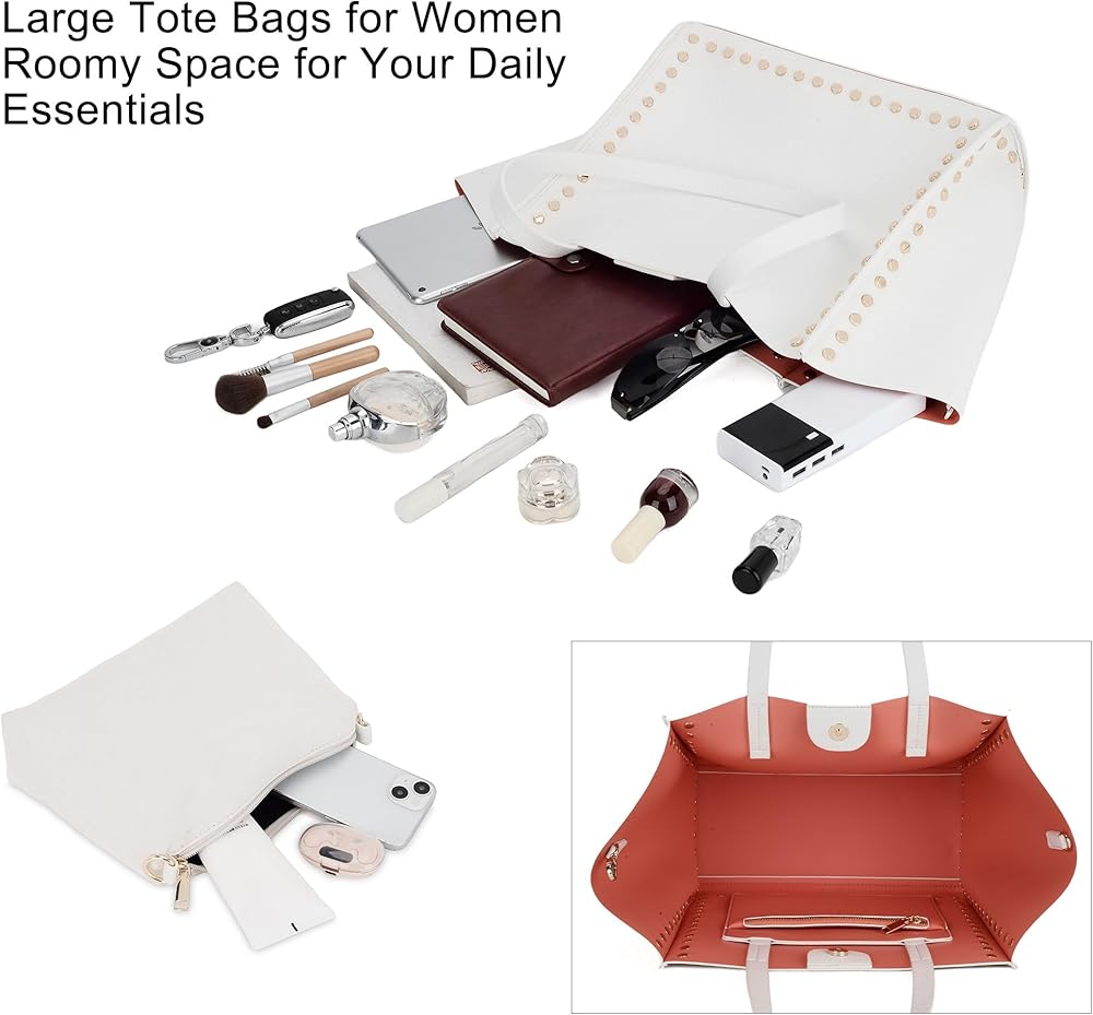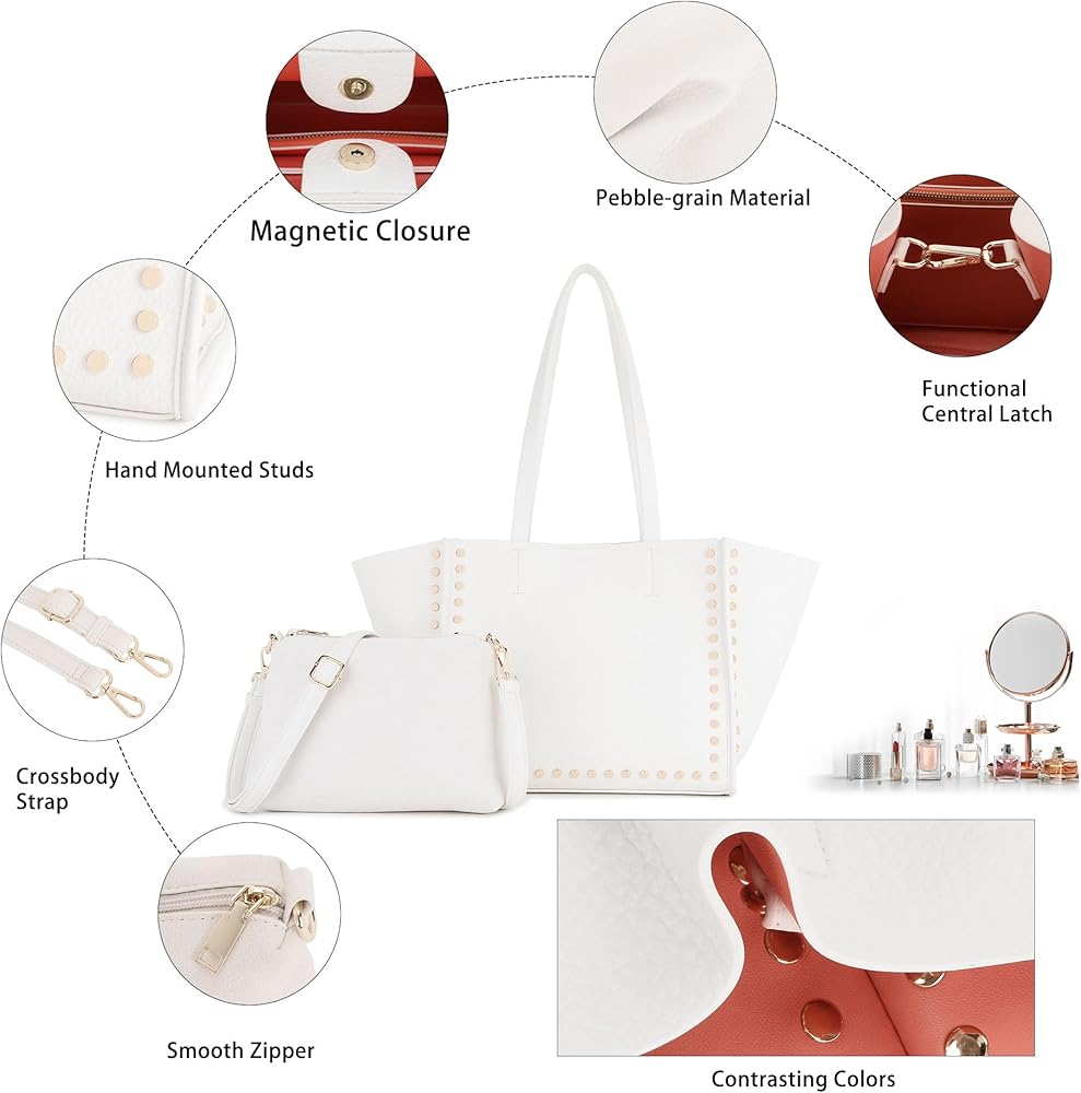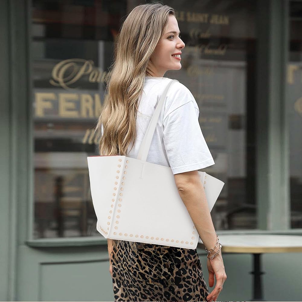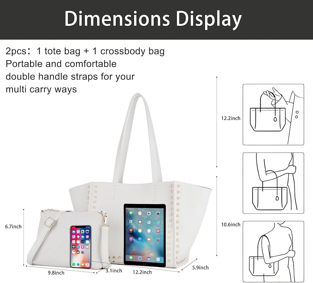 【تصميم فريد】: تصميم بسيط وجمالي مع عناصر مسمار معدنية. تتميز هذه الحقائب الكبيرة للنساء بإغلاق مغناطيسي علوي وأشرطة مسطحة مزدوجة. إنها متعددة الاستخدامات بما يكفي لحملها في أي مكان تقريبًا، بدءًا من العمل ومتاجر البقالة وحتى زيارات صالة الألعاب الرياضية ورحلات التسوق طوال اليوم والأمسيات خارج المدينة.