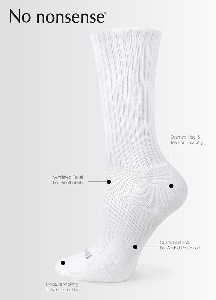 Introducing the No nonsense Soft & Breathable Cushioned Crew Socks, the ultimate combination of comfort and breathability. Crafted with a blend of cotton, nylon, and spandex, these socks offer a soft and breathable feel. The strategically placed ventilated panels ensure optimal airflow, keeping your feet dry and fresh. With a cushioned sole that provides added protection, these socks deliver premium comfort throughout the day. Made in the USA, these crew socks are a must-have addition to your wardrobe.
