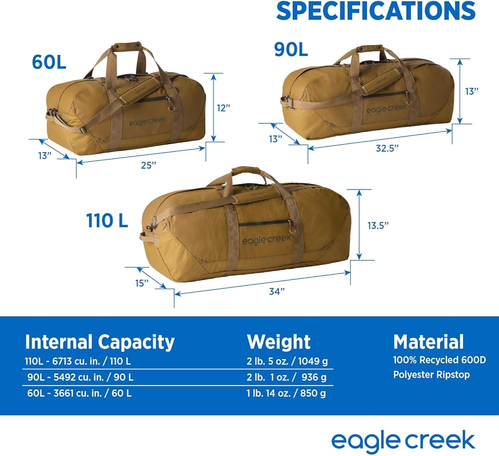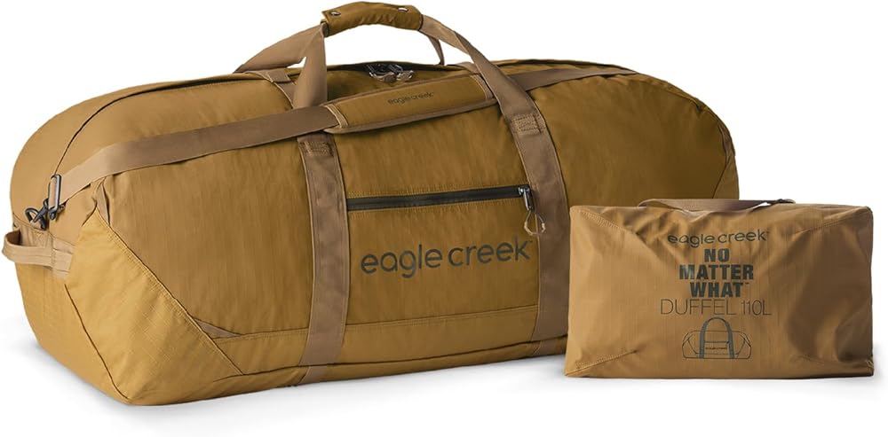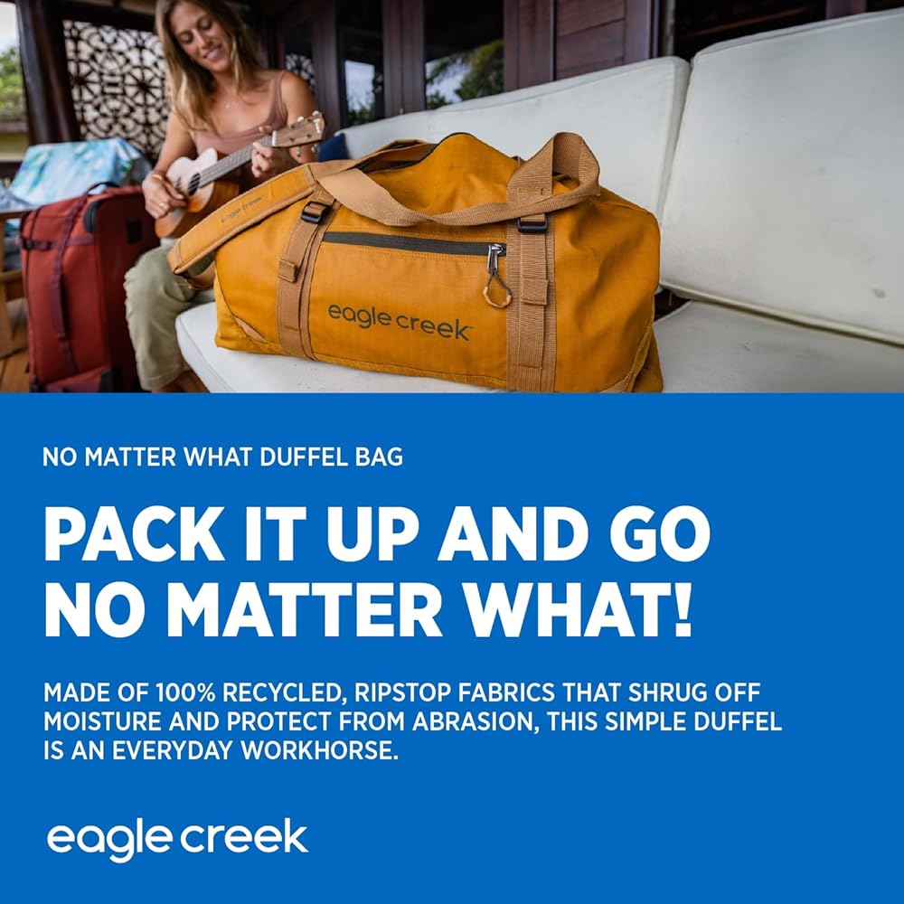 حقيبة سفر متينة ومقاومة للماء مصنوعة بنسبة 100% من بوليستر 600D المعاد تدويره بعد الاستهلاك، مع سحابات قابلة للقفل، ومقابض حمل معززة، وأشرطة ضغط، ونقاط للرموش.