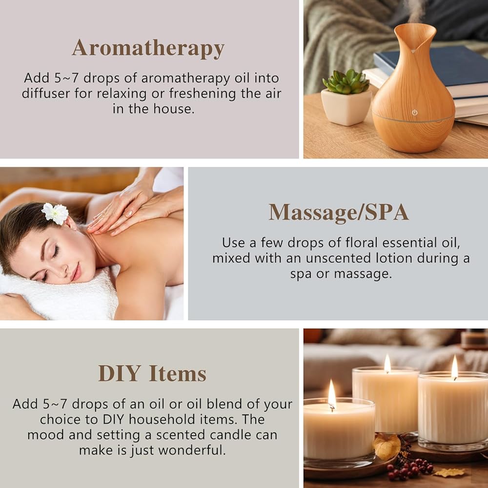 【آمن وطبيعي】نحن نستخرج الزيوت العطرية من مكونات طبيعية فاخرة، وجميعها تأتي من نباتات طبيعية، وهي نباتية وخالية من البارابين وغير سامة ولم يتم الإساءة إلى الحيوانات لتصنيعها، وهي آمنة للاستخدام. الزيوت العطرية الطبيعية ستثير جواً منعشاً في منزلك!