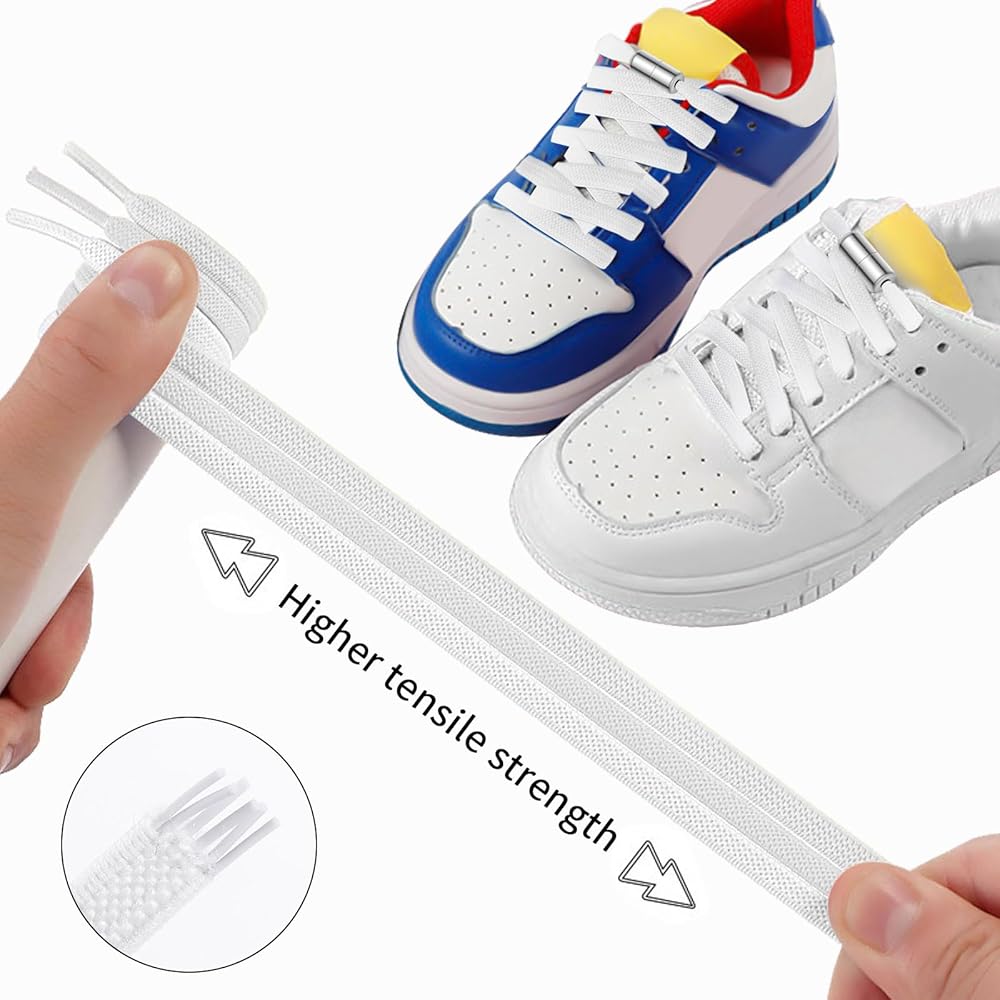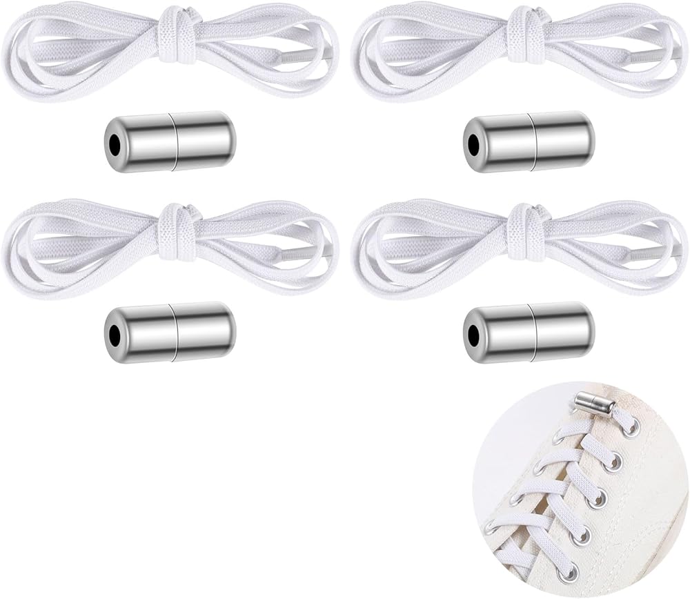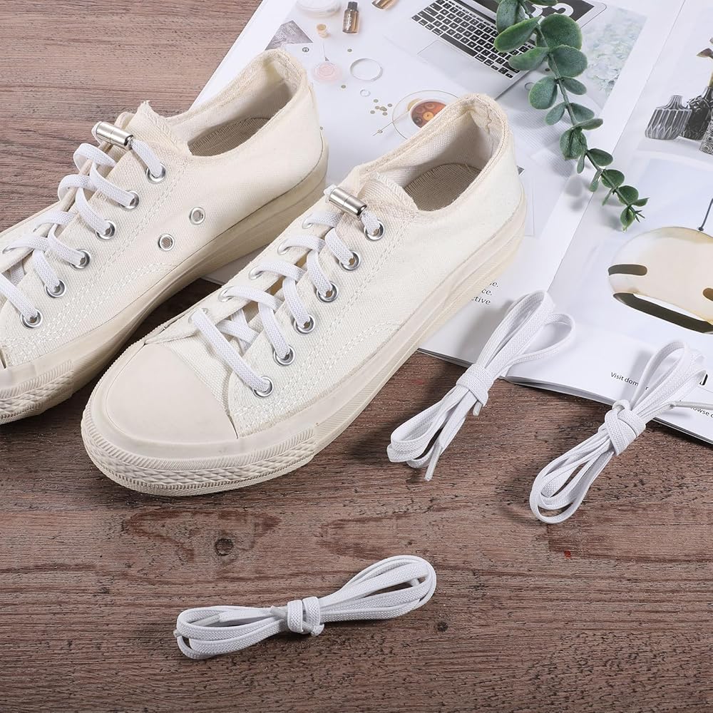 【تشمل العبوة】سوف تحصل على 4 أزواج من أربطة الأحذية المرنة البيضاء مع 8 قطع من الأقفال المعدنية، كل رباط حذاء بطول 100 سم.