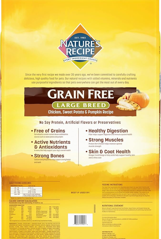 وصفة الطبيعة للدجاج الخالي من الحبوب والبطاطا الحلوة واليقطين، تجعل طعام الكلاب الجاف أسهل (وأكثر إرضاءً) من أي وقت مضى لتغذية هزة كلبك. يتكون طعام الكلاب سهل الهضم من الدجاج الحقيقي باعتباره العنصر الأول، إلى جانب مصادر الكربوهيدرات الغنية بالعناصر الغذائية مثل البطاطا الحلوة واليقطين. تساعد الألياف والعناصر الغذائية النشطة ومضادات الأكسدة أيضًا في دعم عملية الهضم وصحة الجهاز المناعي والعديد من الجوانب الأخرى للصحة العامة لكلبك مع كل قضمة. نحن لا نقوم بتضمين المكونات التي من شأنها أن تجعل وصفتنا أقل من مذهلة - فلا يوجد بروتين مضاف من الذرة أو القمح أو الصويا، ولا وجبة من منتجات الدواجن الثانوية ولا نكهات صناعية أو مواد حافظة. احصل على كيس من طعام الكلاب ذو السلالات الكبيرة لمساعدة كلبك على العيش بشكل كبير.