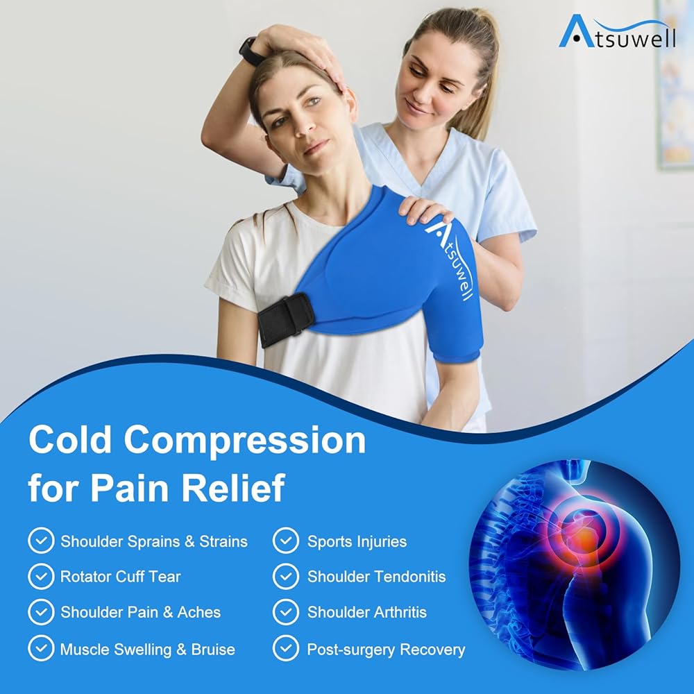 مواد مطورة لتوفير الراحة البسيطة: عبوات ثلج الكتف من Atsuwell مصنوعة من نسيج ليكرا ناعم وقابل للتمدد، وهو مسامي وغير خانق، ويلتف حول منطقة أكبر للحصول على علاج بارد مثالي لمنطقة الكتف. لا حاجة لإدخال عبوات ثلج إضافية لمنعها من الانزلاق أثناء الحركة. رائع للكفة المدورة، وتواء الكتف، والتقرح، والتهاب الأوتار، والتهاب المفاصل والأعراض الأخرى.
