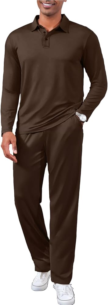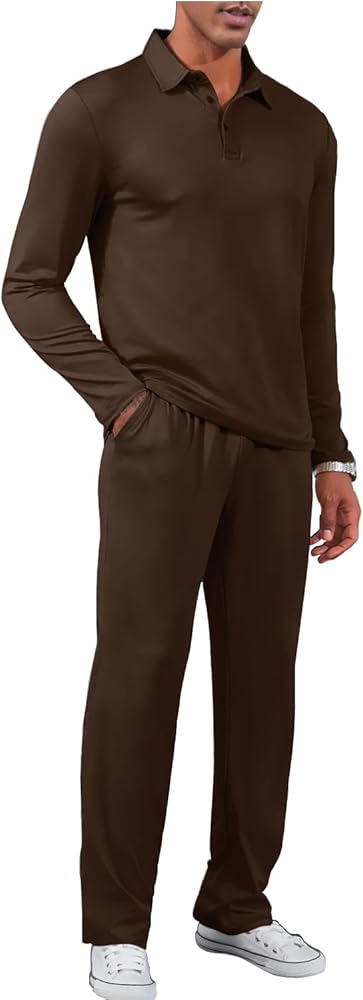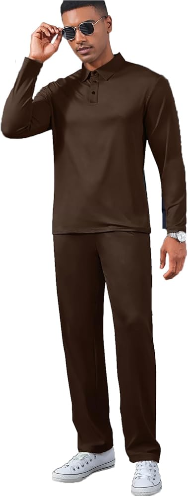5 مقاسات: M/L/XL/XXL/XXXL، تتكون مجموعات البدلات الرياضية هذه من سترة بولو أساسية بلون واحد وزوج واحد من السراويل الرياضية الفضفاضة.