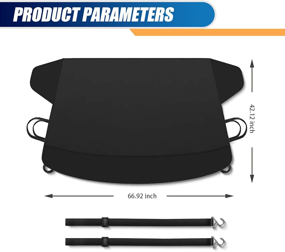 Product Details: You will receive 1 windshield snow cover with a size of 66.9 " x 42.1 ". The front can block snow and frost, and the back can shade and cool down, with various functions. Suitable for most cars, SUVs, MPVs. The size of the windshield can be measured before ordering to ensure perfect coverage.