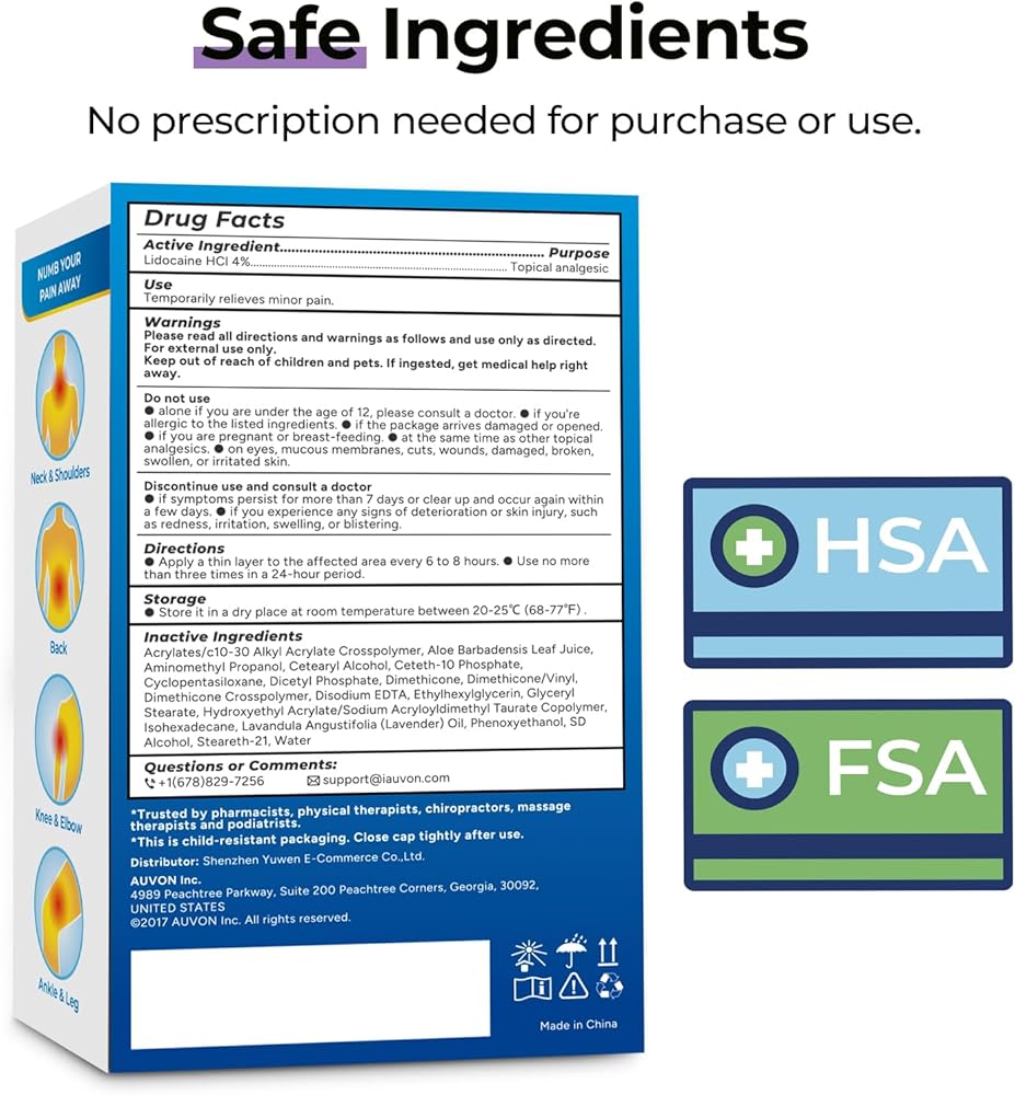 مؤهل للحصول على أموال FSA/HSA: منتج تخفيف الآلام الليدوكائين الخاص بنا مؤهل للحصول على FSA/HSA، مما يسمح لك بالاستمتاع بخصم يصل إلى 30%