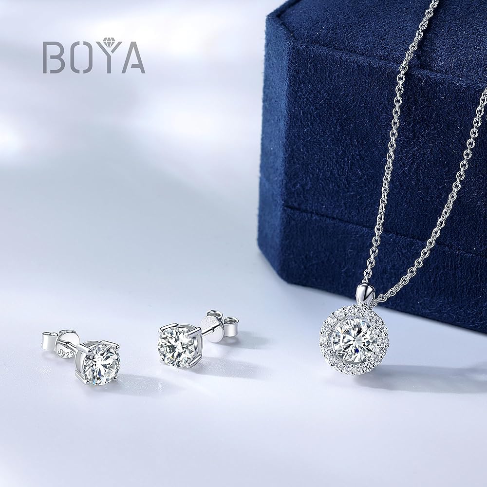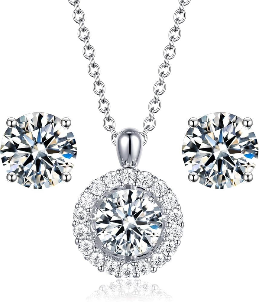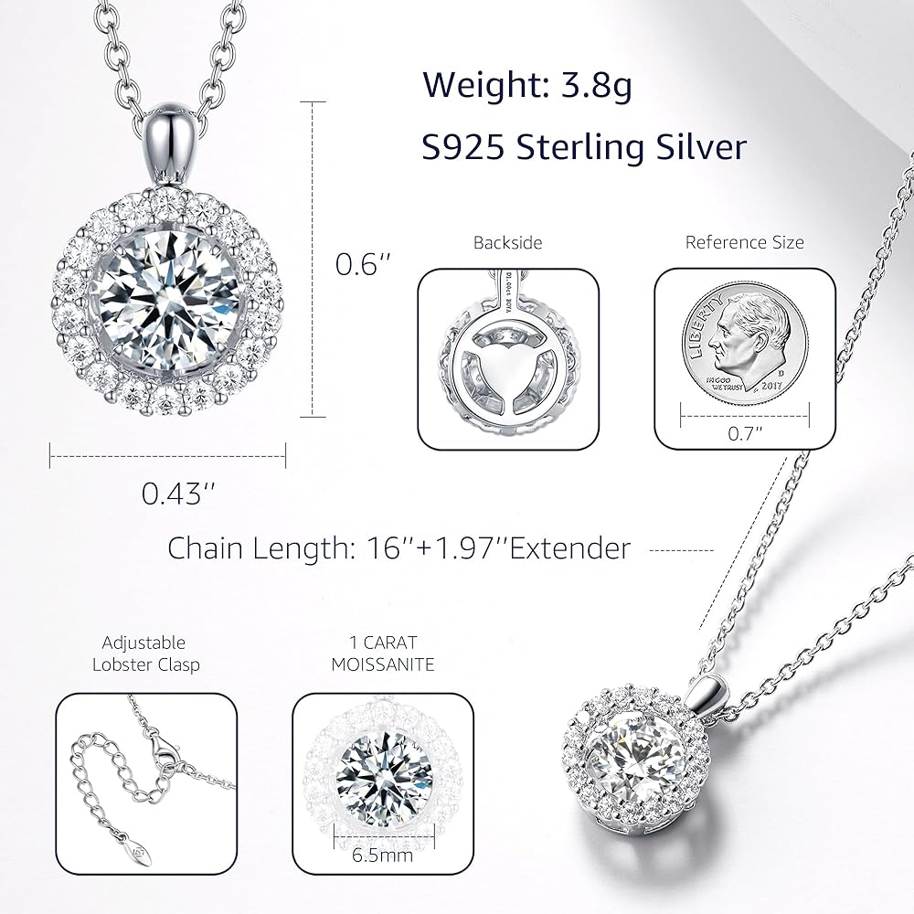【925 STERLING SILVER NECKLACE and EARRINGS】Our moissanite diamond necklaces and pendants are made of sterling silver, plated with expensive rhodium for extra sparkle, and are hypoallergenic and antioxidant, ensuring that you can wear them with confidence. It's lead and nickel free and will never fade on you.The chain length is 18"+2",which is suitable for most women.