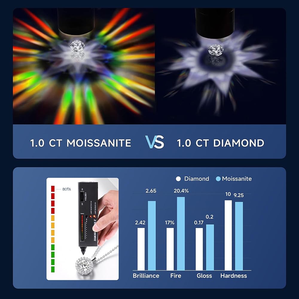 【UNPRECEDENTED BRILLIANCE】Meticulously handcrafted by our skilled artisans, each moissanite necklace is a testament to our commitment to quality and detail. The flawless diamond reflects the radiance of your love, capturing light from every angle and leaving a trail of captivating sparkle wherever you go.