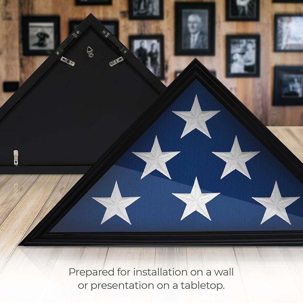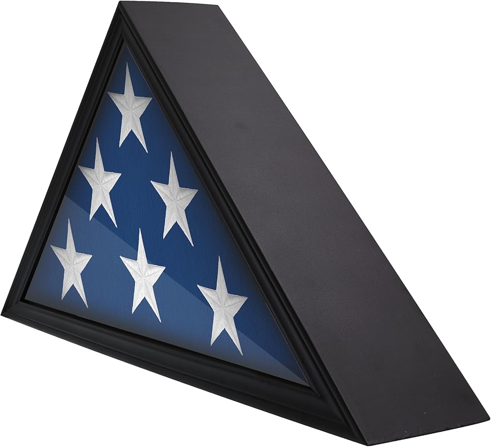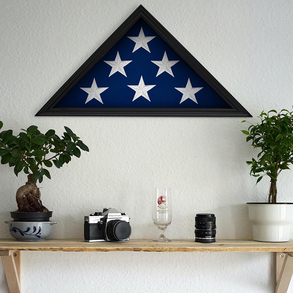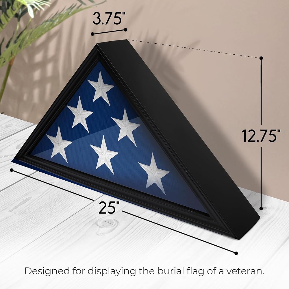 حامل علم من الخشب الصلب للمحاربين القدامى الأمريكيين، حافظة عرض لعلم الدفن الأمريكي المطوي، حافظة عرض علم مثبتة على الحائط مع واجهة زجاجية، 9.5 × 5 أقدام (أسود)