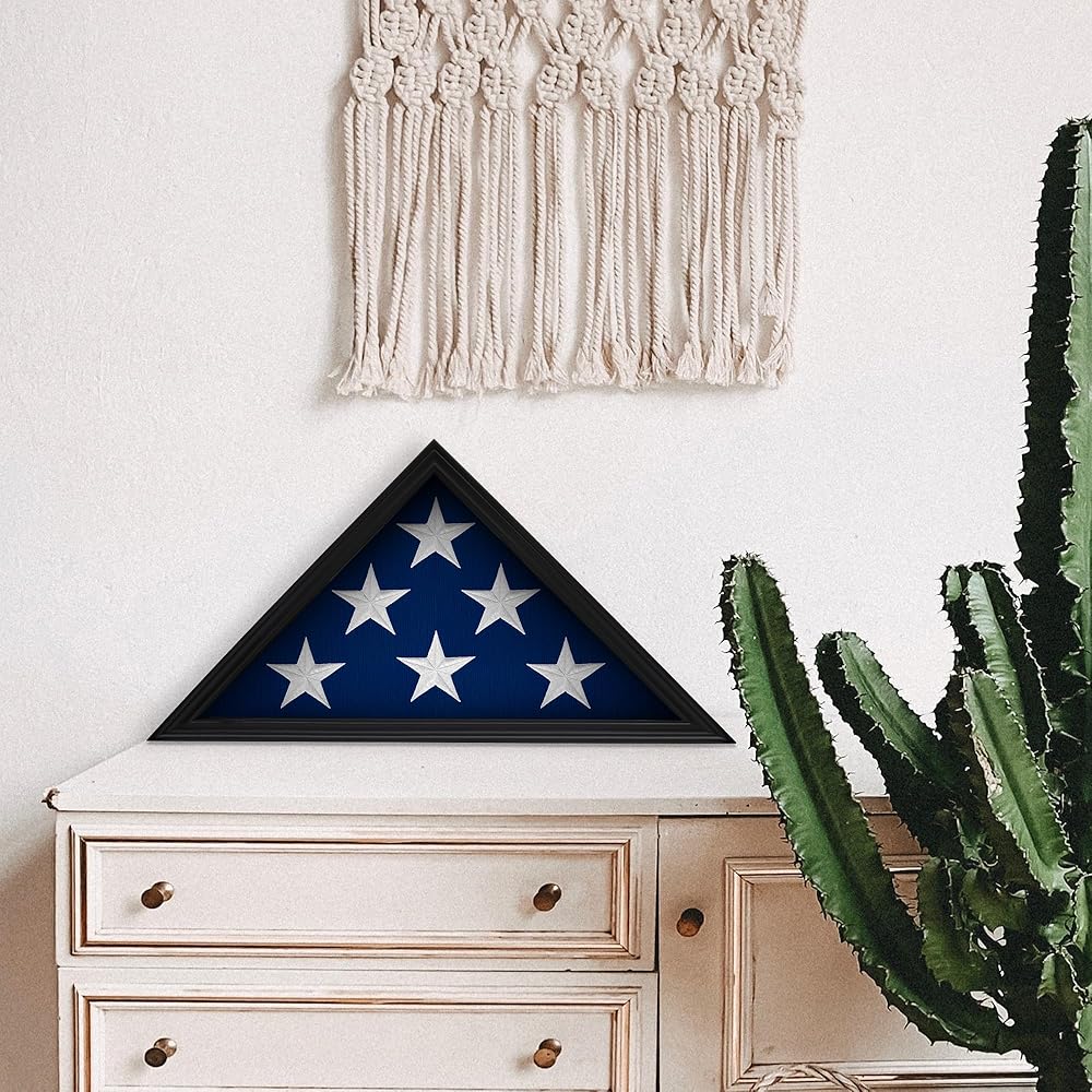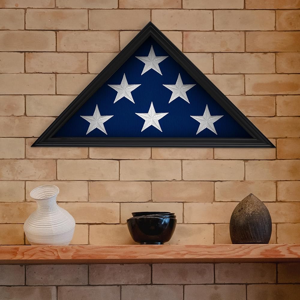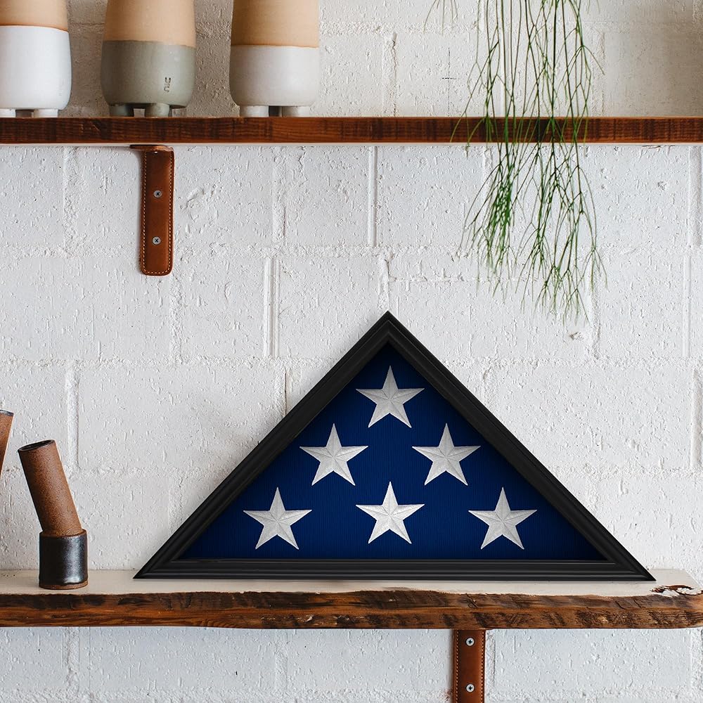 حامل علم من الخشب الصلب للمحاربين القدامى الأمريكيين، حافظة عرض لعلم الدفن الأمريكي المطوي، حافظة عرض علم مثبتة على الحائط مع واجهة زجاجية، 9.5 × 5 أقدام (أسود)