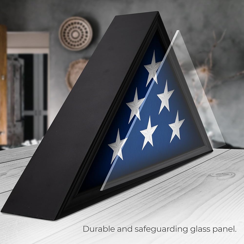 Great Display - Keep it looking great with this folded flag display case- With its the metal frame turn buttons and printable glass surface, our shadow box display cases will keep your memorabilia secure and look its best.