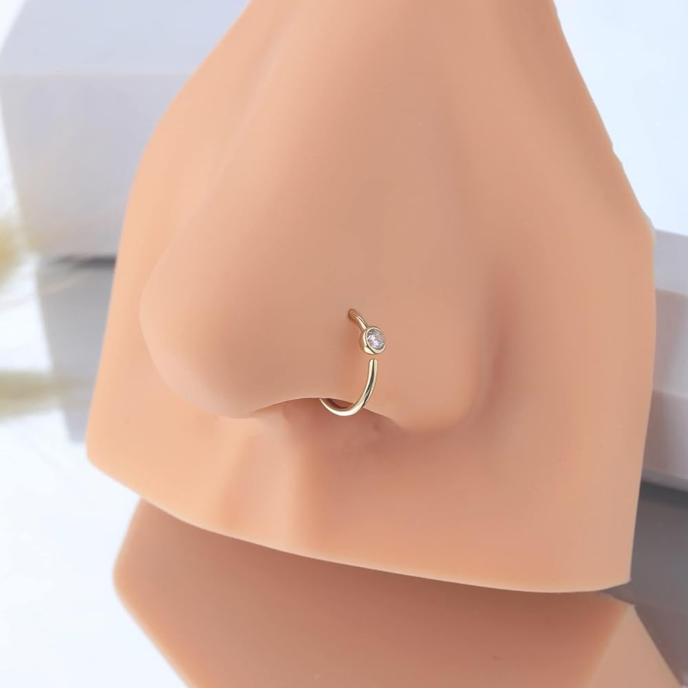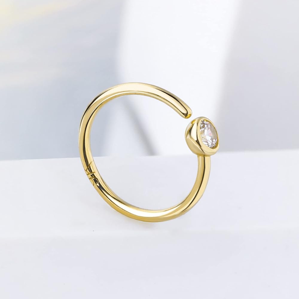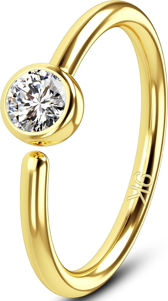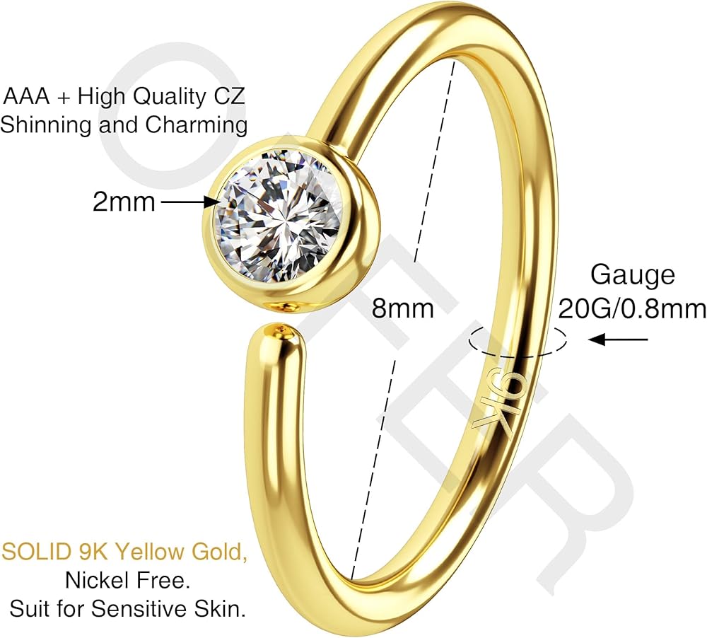 【تصميم ساحر】: قطعة واحدة من حلقة الأنف الذهبية الصلبة 20 جرام 9 قيراط مع تصميم تشيكوسلوفاكيا الشفاف اللامع، أنيقة تمامًا للحصول على مظهر أنيق للحصول على مظهر مثالي.