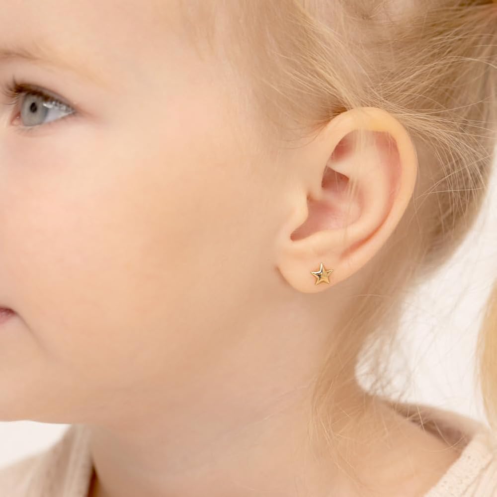 مقاس القرط: نجمة 6 مم؛ عمود حلق ملولب 8 مم؛ يوصى بها للأعمار من 2 إلى 12 عامًا