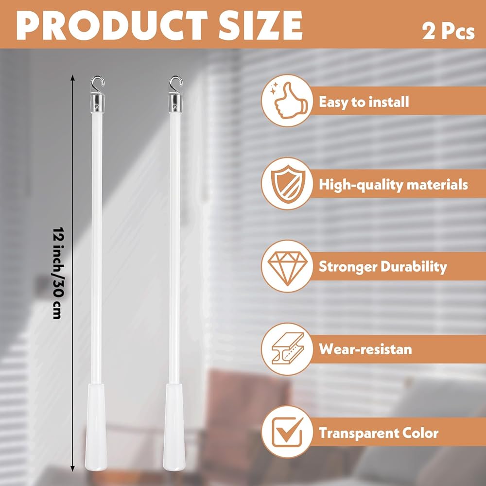 1. You will get two white blinds wand replacements with hooks and handles. The vertical blind clips are suitable for home decoration and all kinds of curtains.