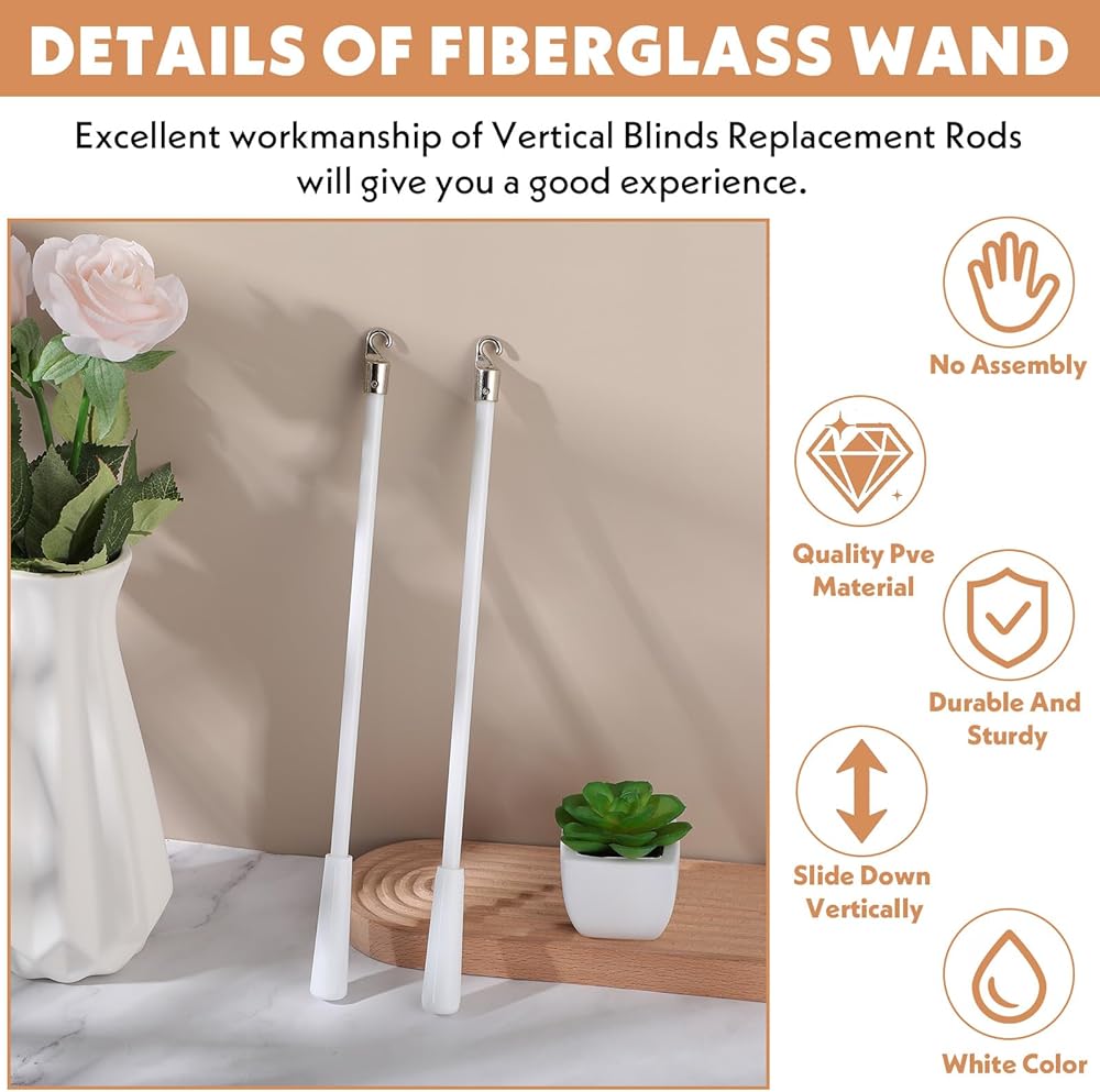 Qianyu 2 Pieces Fiberglass Blind Wand White Vertical Long Blinds Replacement Parts with Handle Hook Curtain Stick Blinds Tilt Wand for Windows Curtain Door Shades Opener Accessory