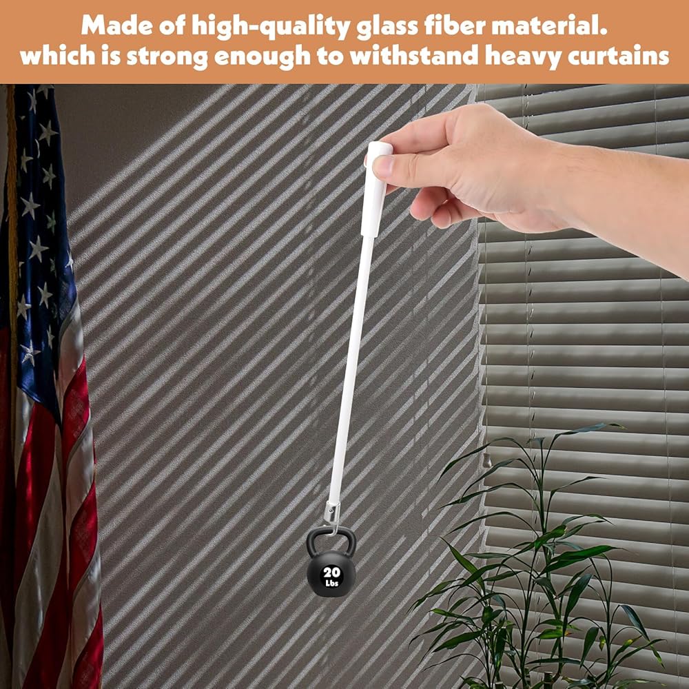 【High-quality materials】This blind wand is made of high-quality fiberglass material, and the curtain wand rod hook is made of high-quality zinc alloy material. The blind wand replacement with hook is sturdy and durable for long-term use. The blind wand replacement can pull up heavy curtains and blinds.