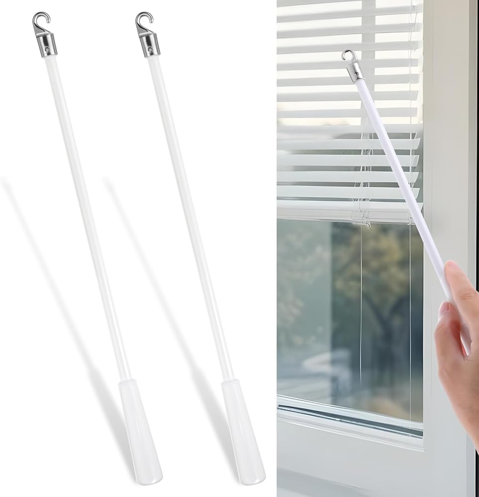 Function: The blind rod with hook is pre-installed, just connect the hook to the connection ring above the blind, you can easily adjust the angle of the replacement blind rod and open and close the blinds easily