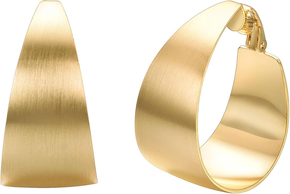 أقراط كبيرة الحجم: هذا الزوج من الأقراط غير المثقوبة بمقاس كبير، يبدو كبيرًا جدًا، 0.67*1.14*1.37 بوصة (1.7*2.9*3.5 سم)، بسبب حجمه الكبير، فهو أثقل من الأقراط العادية، مشبك حلقي كلاسيكي على الأقراط أنيقة وعصرية.