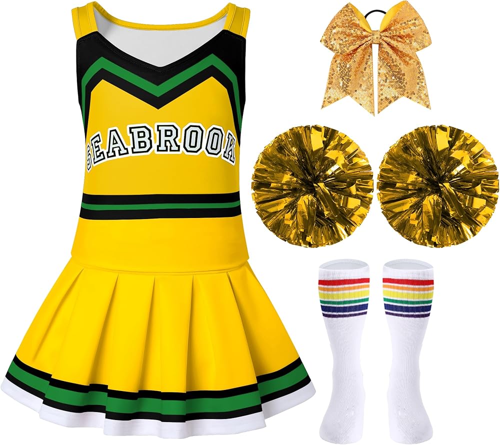 ZapLute Cheerleader Costume for Girls Cheerleading Outfits Kids Movie Halloween Dress Up Cosplay with Pom Bowtie Stocking