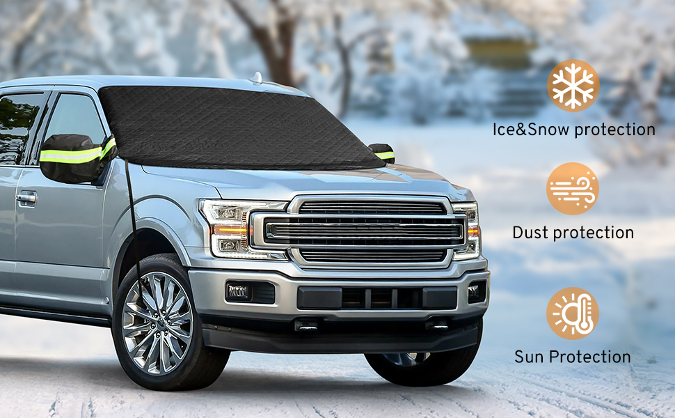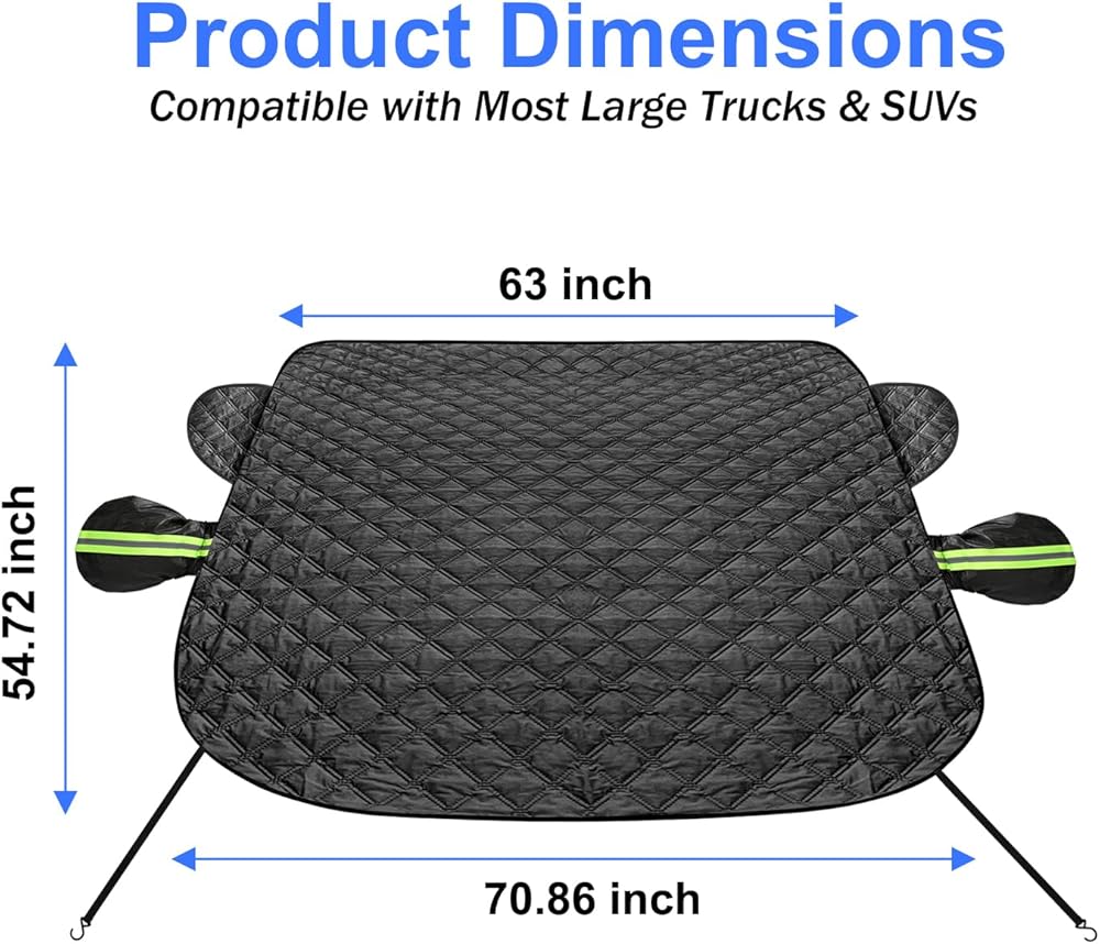 【متوافق مع معظم سيارات الدفع الرباعي والشاحنات كبيرة الحجم】: غطاء الزجاج الأمامي الثلجي الذي يبلغ طوله 71 بوصة وارتفاعه 55 بوصة سيغطي الزجاج الأمامي من النهاية إلى النهاية! يناسب جيدًا سيارة Ford F150 F250 Expedition Explorer، وغيرها من سيارات الدفع الرباعي والشاحنات ذات الحجم الكبير.