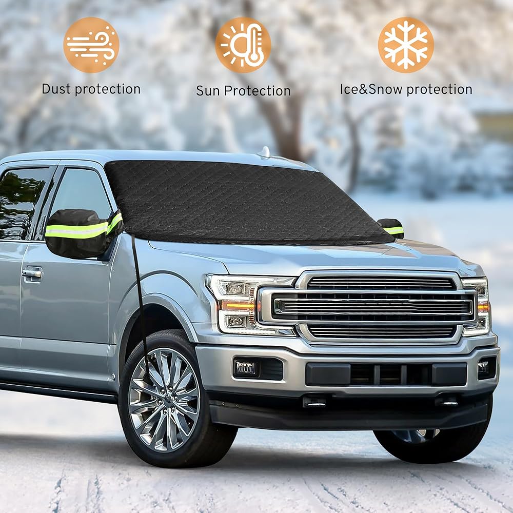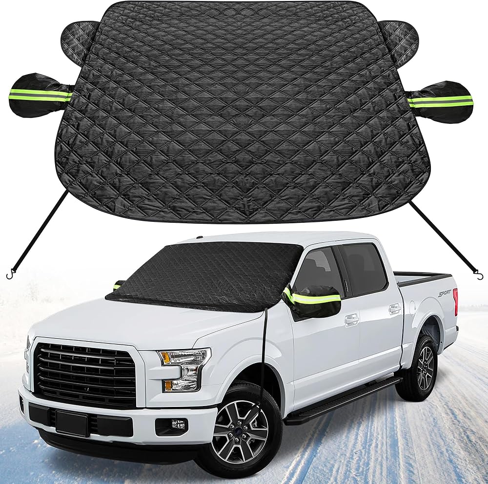 غطاء الزجاج الأمامي XHRING لشاحنة الجليد والثلج، غطاء مغناطيسي للسيارة مضاد للثلج، درع الصقيع مع أغطية مرآة جانبية متوافقة مع Ford F150 F-150 F250 Explorer وغيرها من شاحنات الالتقاط وسيارات الدفع الرباعي كبيرة الحجم