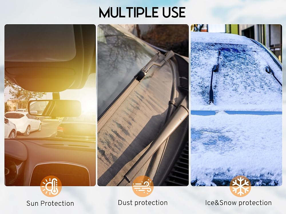 【غطاء زجاج أمامي متعدد الوظائف】: درع الثلج هذا ليس مناسبًا للأيام الثلجية في الشتاء فحسب، بل يمكنه أيضًا حجب أشعة الشمس في الصيف، ويمكن استخدامه أيضًا في موسم الأمطار والأيام العاصفة وغيرها من الأحوال الجوية القاسية. يتيح لك تعدد استخداماته استخدامه بغض النظر عن الموسم الذي تعيش فيه، وهو عالمي حقًا لجميع المواسم.