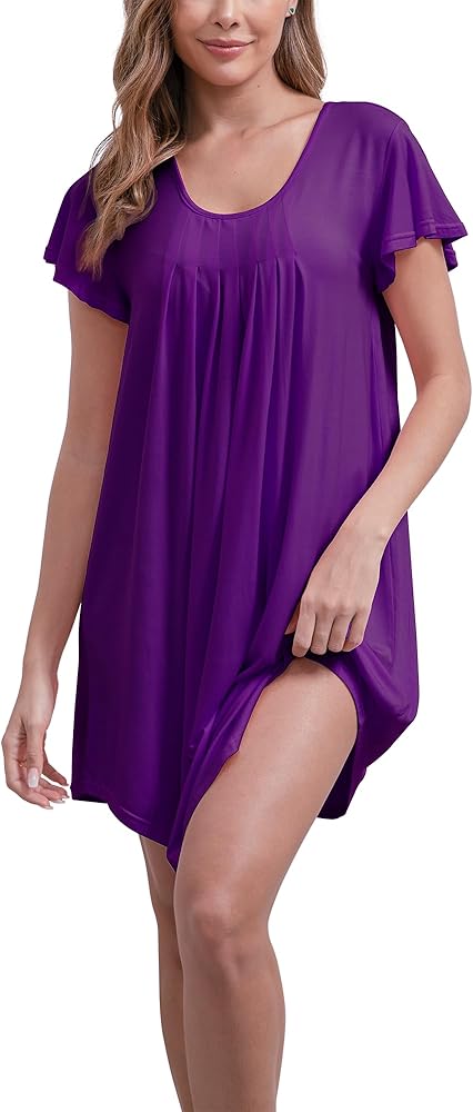 نسيج فائق النعومة: مصنوع من 95% رايون، 5% ألياف لدنة، قمصان النوم فائقة النعومة، ومسامية جدًا ومنسدل. فستان نوم نسائي ناعم ومريح يسمح لك بالنوم بسلام والحصول على حلم جميل حتى في ليالي الصيف الحارة
