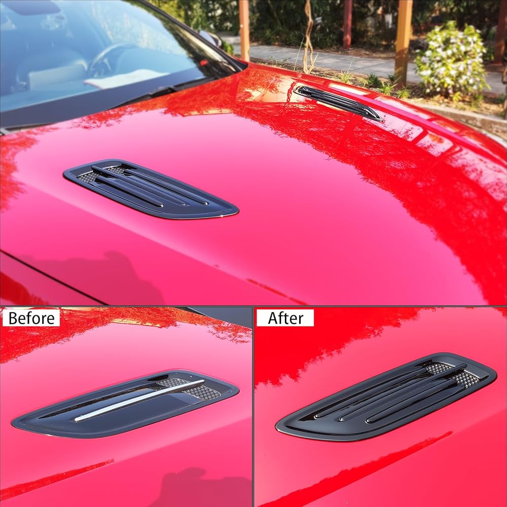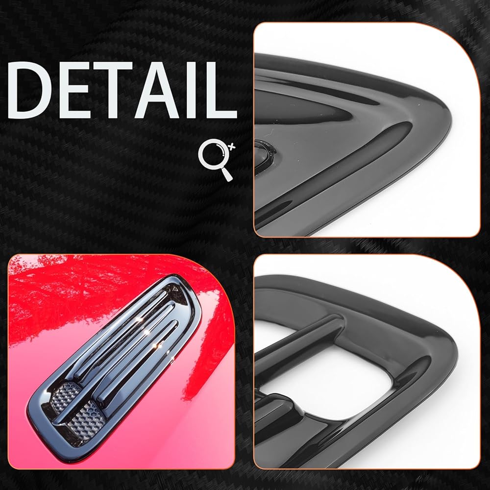【Material】The Air Flow Intake Hood Scoop Vent Cover Trim is made of high quality plastic materials, and the surface is solid glossy black and processed for deformation protection, anti-corrosion.Non-toxic and odorless, durable and strong.Provide a high class and sport decor style for your car.