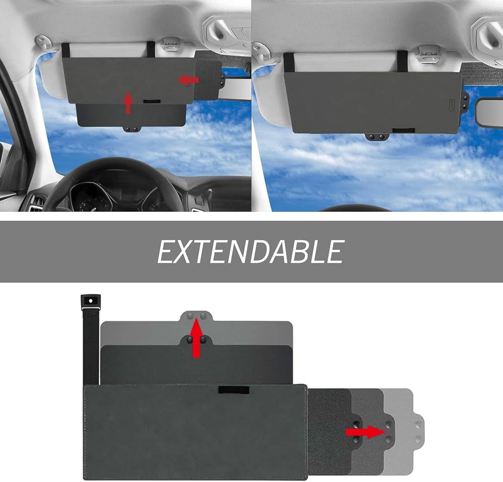 • Widely Use: This sun visor is suitable for any type of car or SUV. This visor can avoid direct sunlight and reduce eye fatigue, allowing for a clearer vision while driving and helping to protect your vision from the effects of direct sunlight.