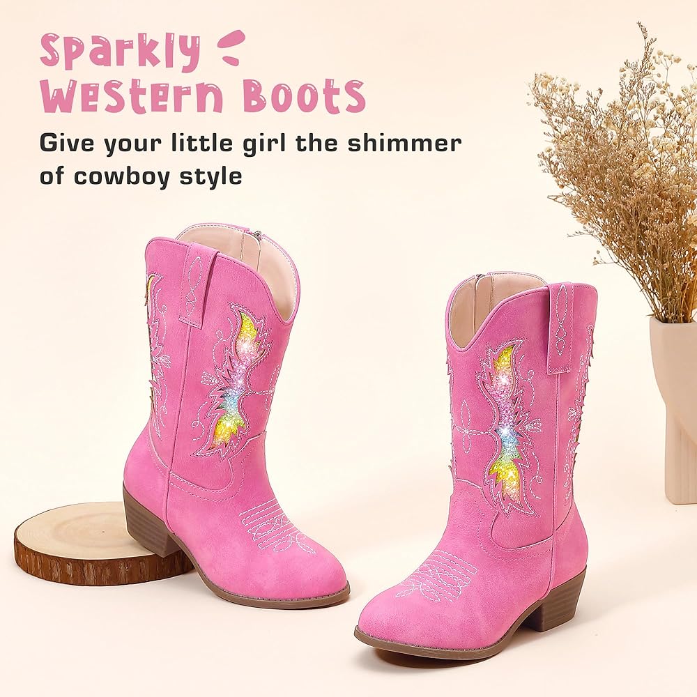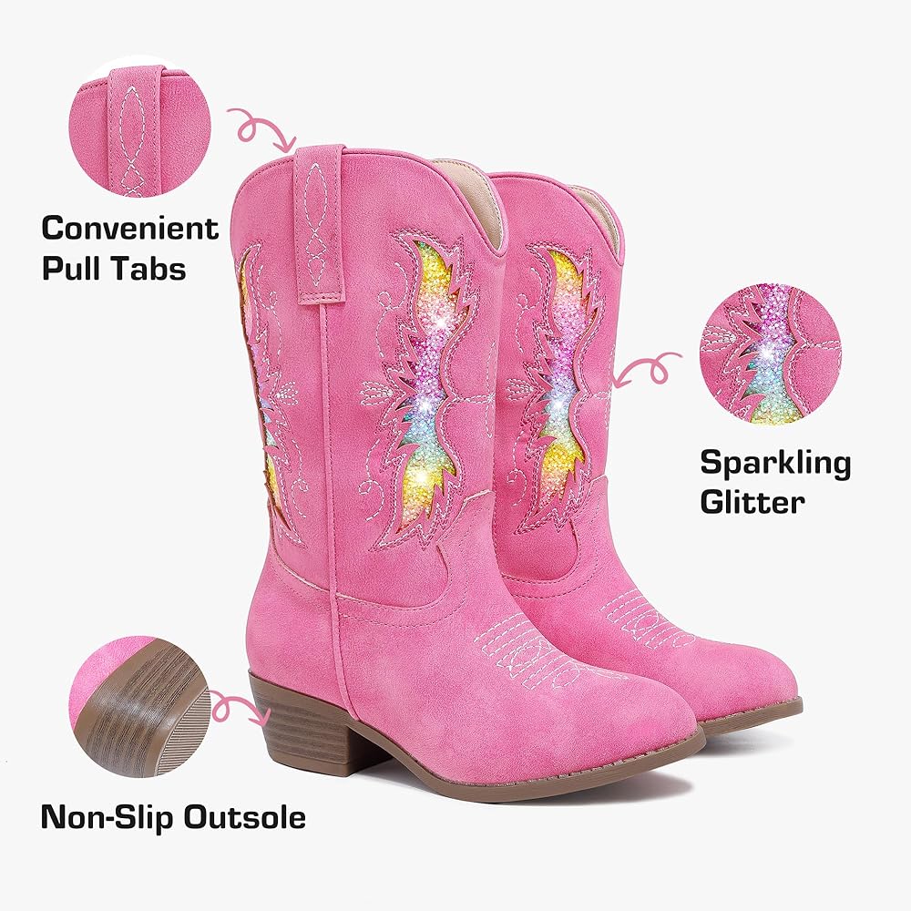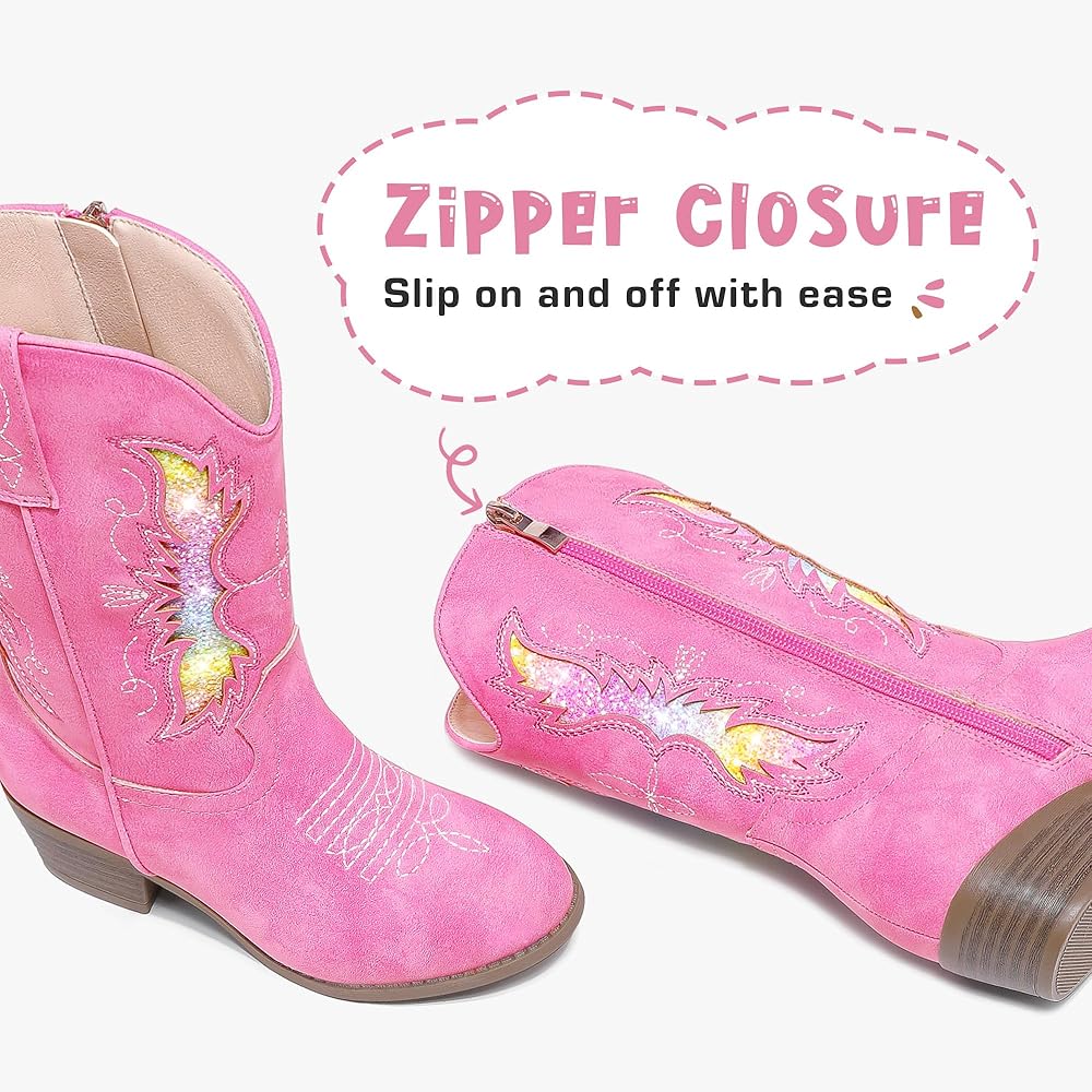 • بطانة مريحة: توفر البطانة الناعمة في أحذية راعية البقر هذه للفتيات لمسة لطيفة على جلد طفلك، كما يضيف تصميم منتصف الساق حماية إضافية