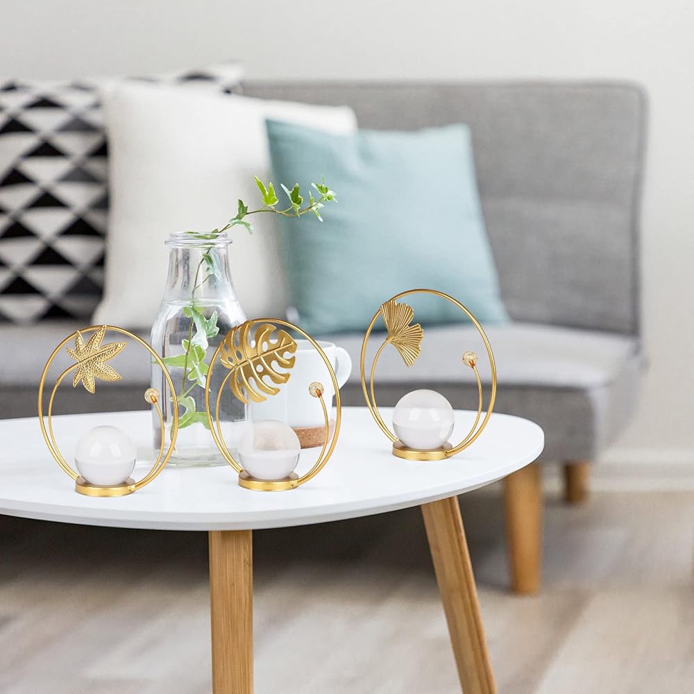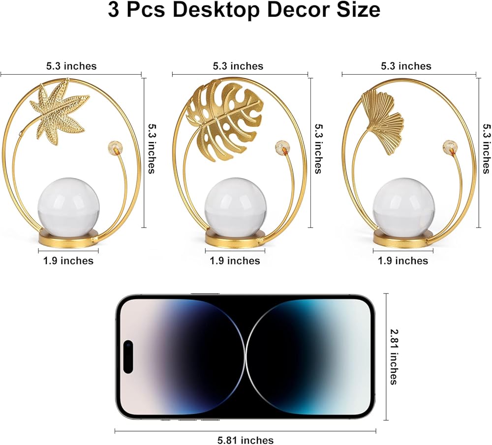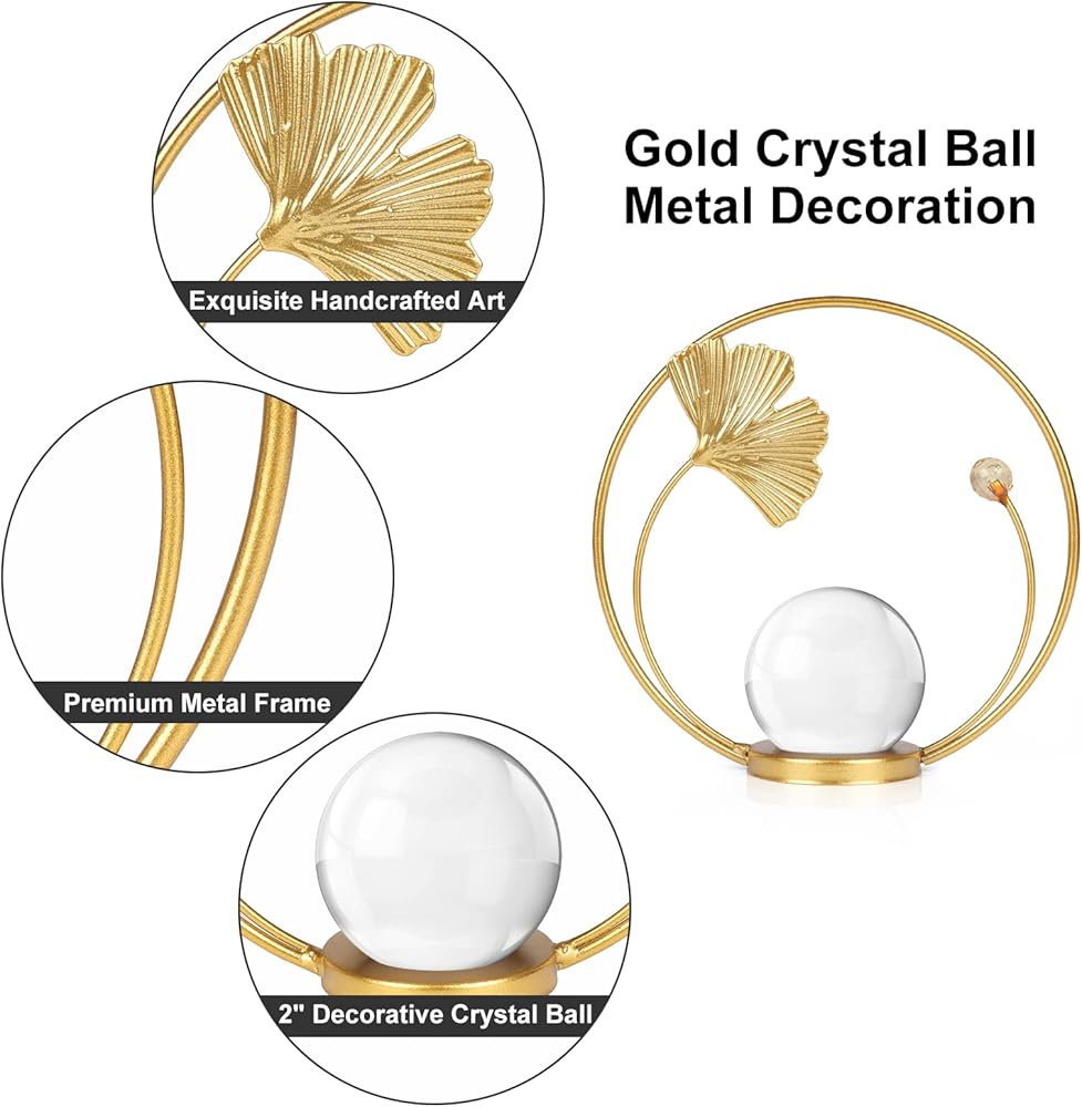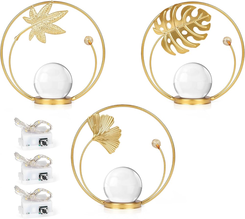 • مجموعة كرات كريستالية مزخرفة - ثلاثة زخارف ذهبية تخلق سحرًا أنيقًا. تعتبر الكرات الكريستالية الشفافة ذات منحوتات الأوراق المعدنية إضافة جيدة لديكور منزلك وتضيف لمسة رائعة وأجواء رومانسية إلى أي مساحة.