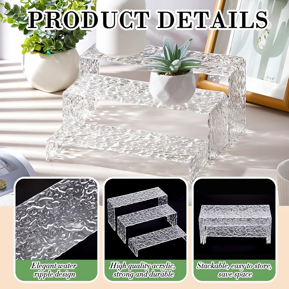 Robust, sturdy, and stylish, these clear acrylic display risers are specifically designed to balance style with functionality. They are nice for showcasing your treasured possessions and are a must have for every home.
