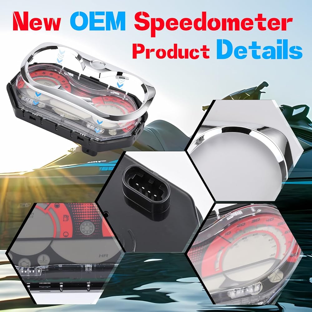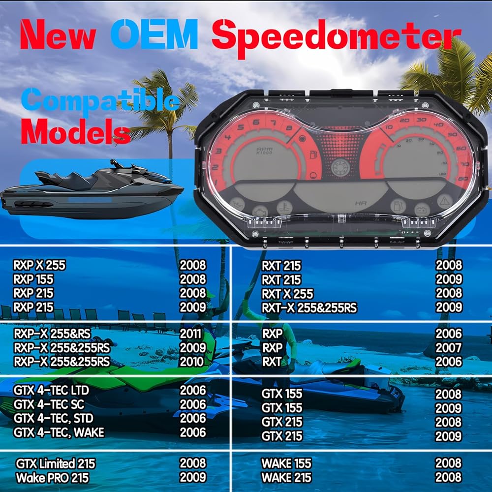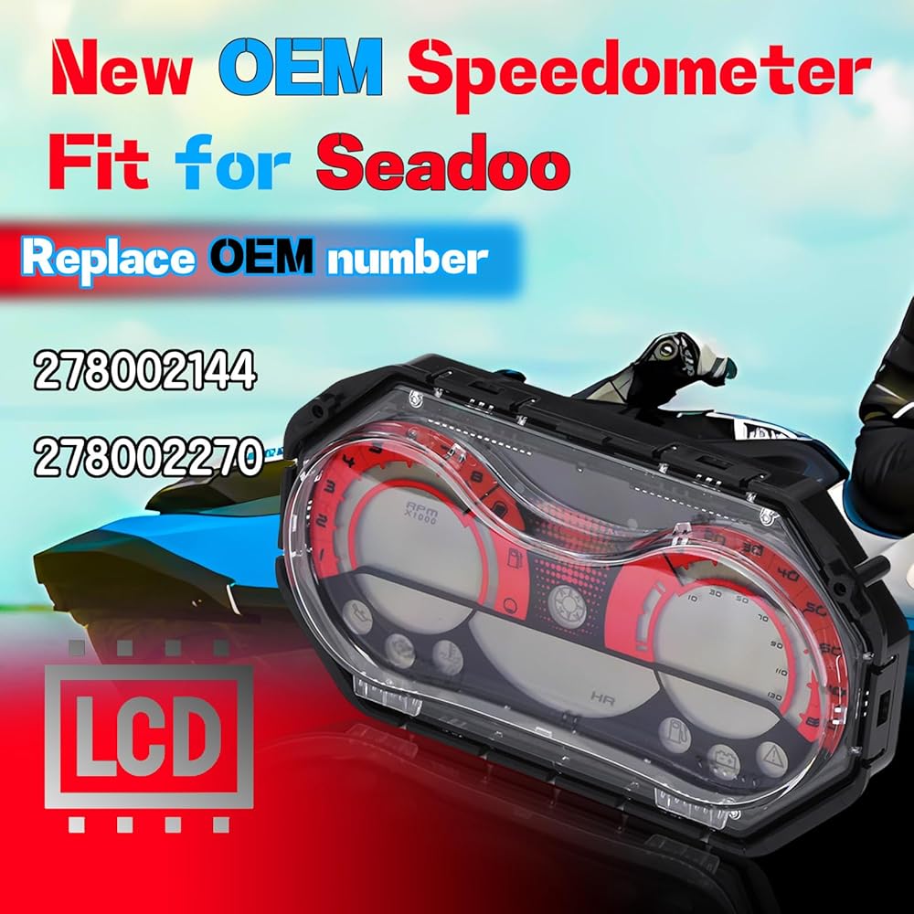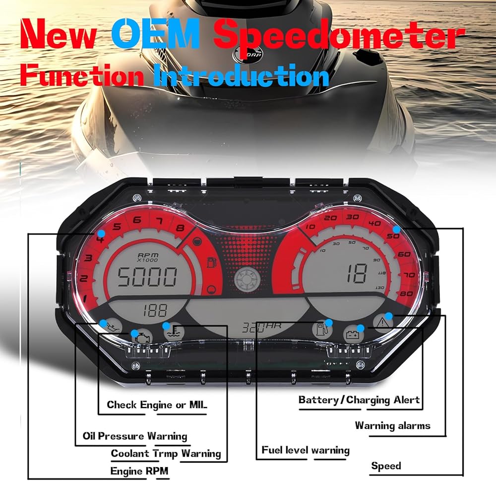 لا يتطلب برمجة عداد سرعة OEM جديد مع مقياس LCD وإطار من الكروم مناسب لـ Seadoo GTX RXP RXT Wake Replace 278002270 278002144 مجموعة أدوات القياس الرقمية (أحمر)