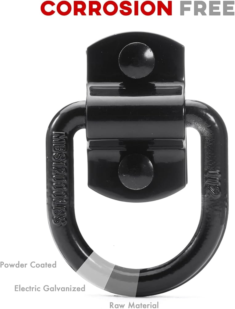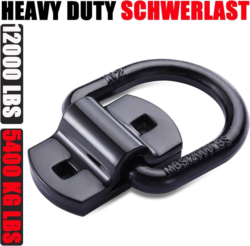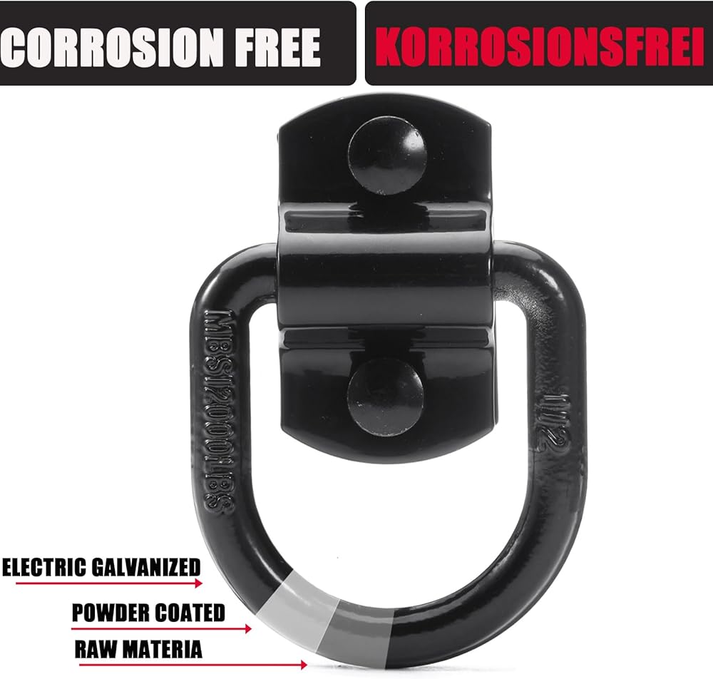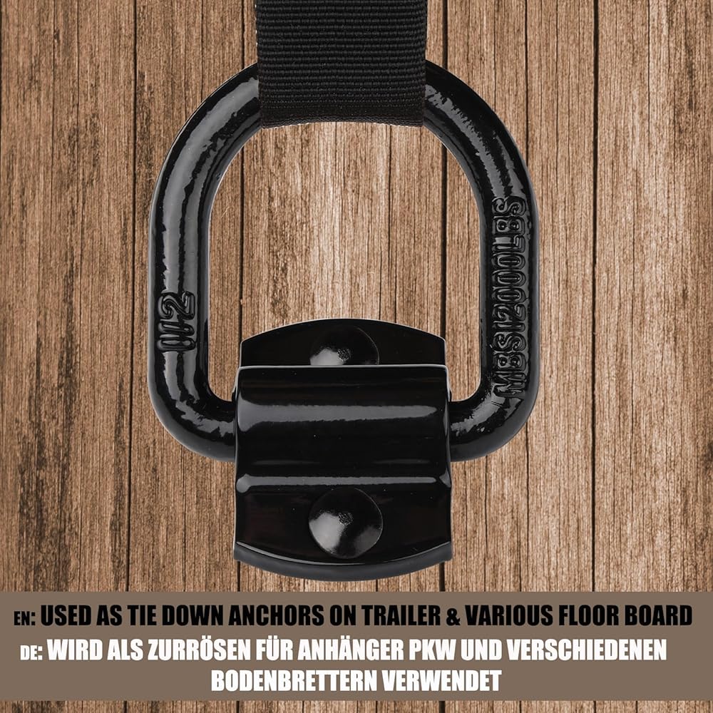 حلقات على شكل حرف D بقوة كسر 12000 رطل - دعامات خطافية شديدة التحمل - مثالية للسحب والسحب وربط البضائع في الشاحنات، وحلقات على شكل حرف D مثبتة على الأرض للمقطورة المغلقة، والتخييم والقوارب - مصنوعة من الفولاذ الفاخر للتعامل مع الأحمال الصعبة والتضاريس الوعرة.
