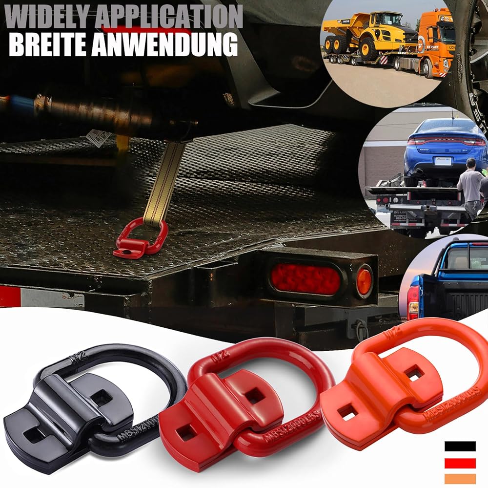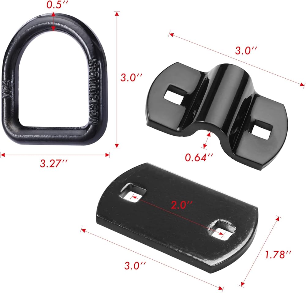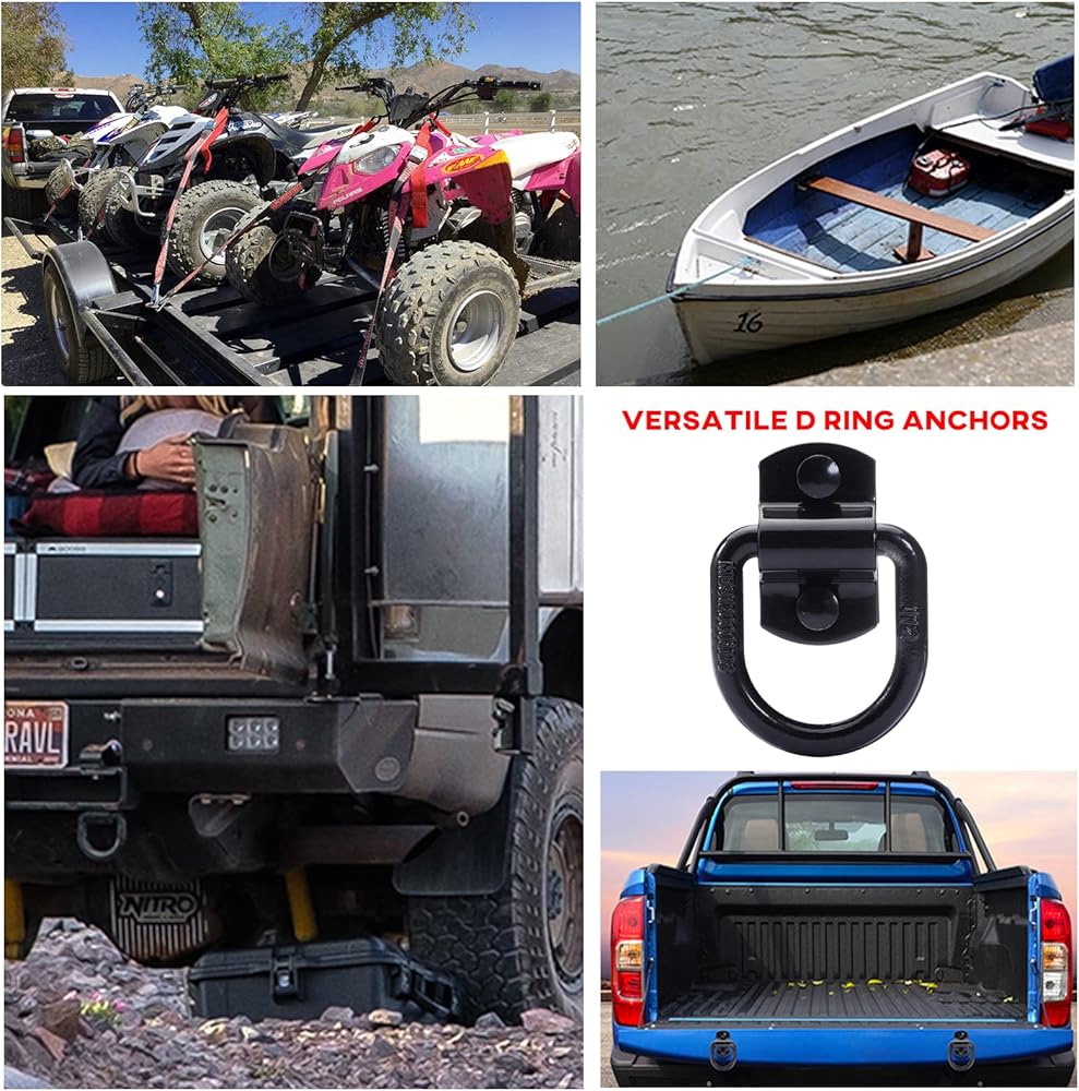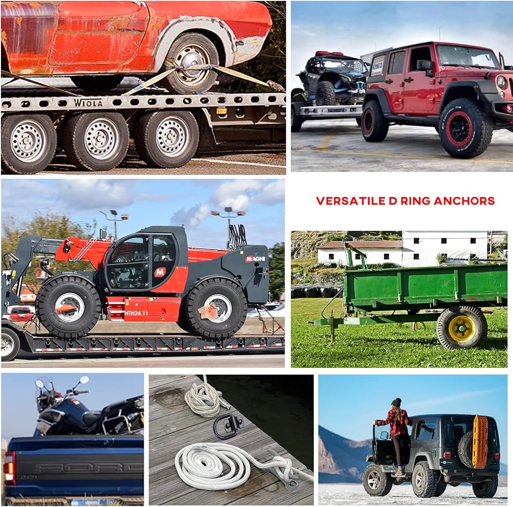 حلقات على شكل حرف D بقوة كسر 12000 رطل - دعامات خطافية شديدة التحمل - مثالية للسحب والسحب وربط البضائع في الشاحنات، وحلقات على شكل حرف D مثبتة على الأرض للمقطورة المغلقة، والتخييم والقوارب - مصنوعة من الفولاذ الفاخر للتعامل مع الأحمال الصعبة والتضاريس الوعرة.