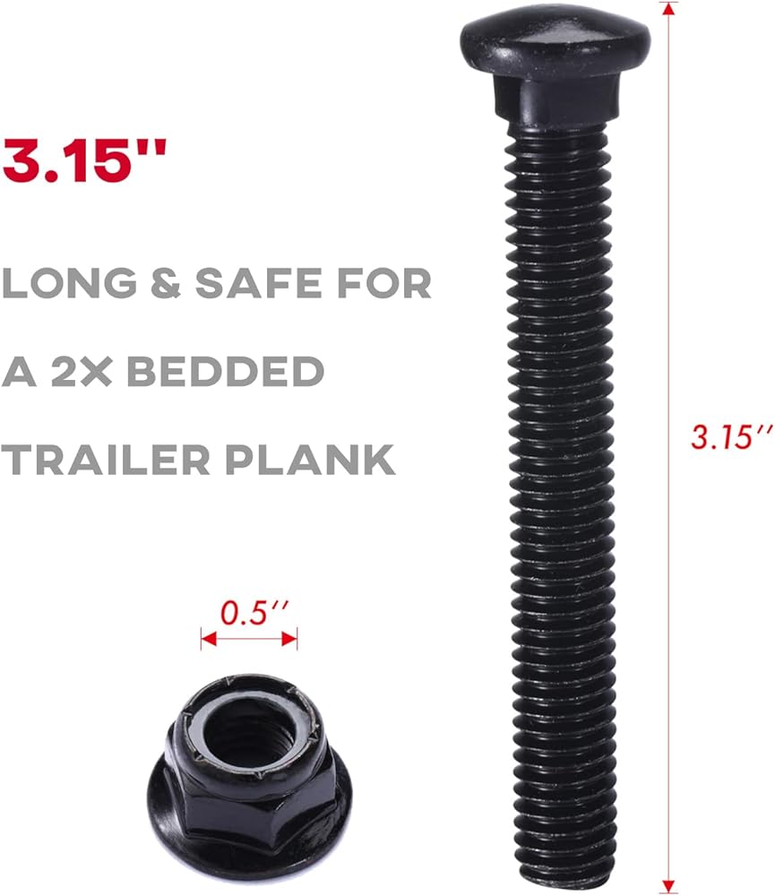 حزمة كاملة - تأتي أربطة المقطورة الخاصة بنا مع أربعة خطافات مقطورة مقاس 1/2 بوصة، وأربعة أشرطة تثبيت وألواح داعمة، وثمانية مسامير حمل مقببة بسمك 3/8 بوصة وطول 3.15 بوصة، وثمانية صواميل قفل شفة على طراز النايلون
