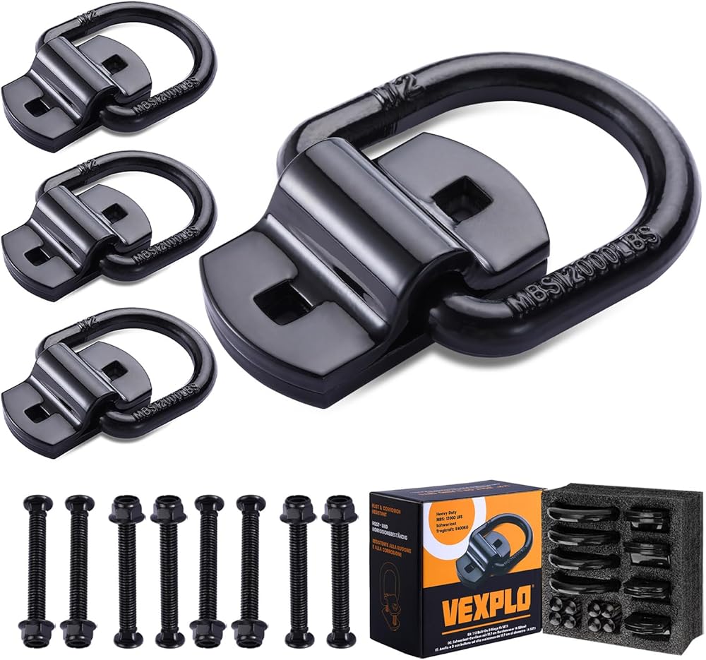 حلقات على شكل حرف D للمقطورات مقاس 1/2 بوصة لخطافات سرير الشاحنات المقطورة، ومسمار عالي التحمل على أدوات ربط الشاحنات المزورة والمراسي بقوة كسر تبلغ 12000 رطل (عبوة من 4 قطع)