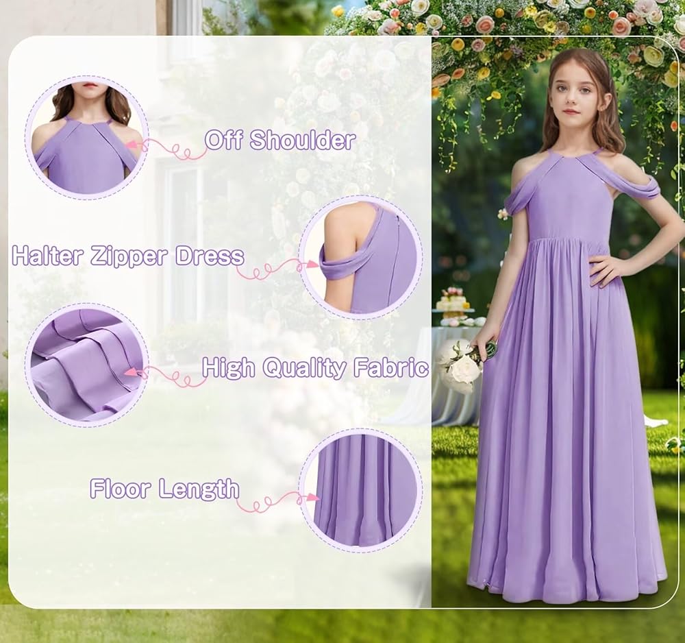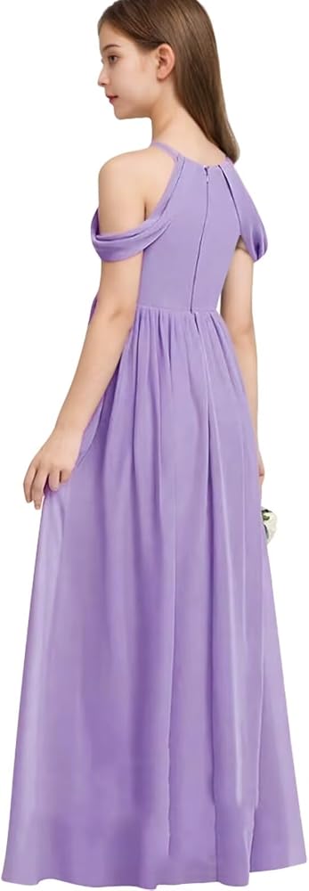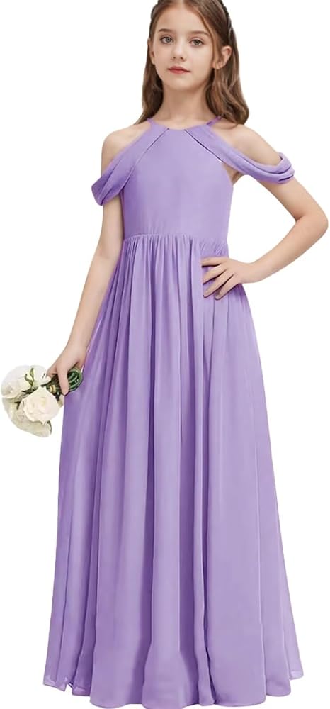 Girls Halter Maxi Dress Girl A-line Junior Bridesmaid Flower Girl Dress Off-shoulder Chiffon Dress
