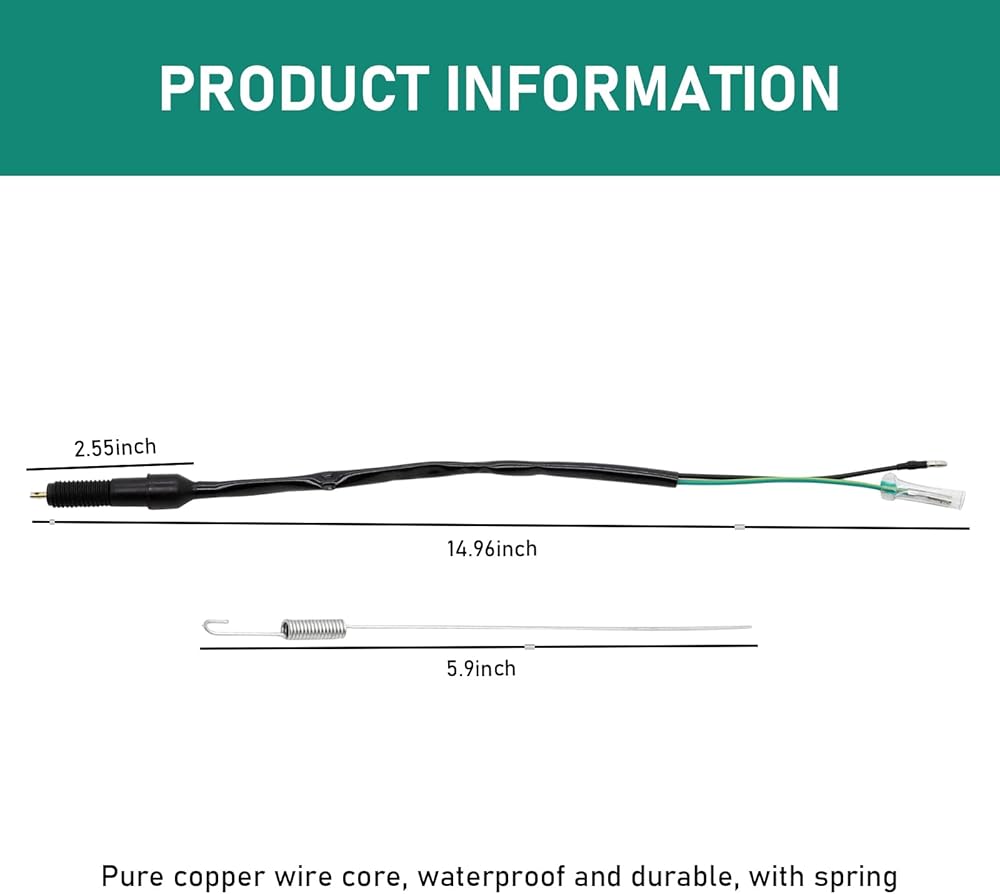 Product Parameters: The brake light switch cable length is approximately 15.6" (397mm), and the spring length is approximately 7.4" (190mm). Thread size M12 x 1.5. With an ultra-small but effective spring design, you can cut your brake springs to size. Direct replacement for most brake pedal switches.