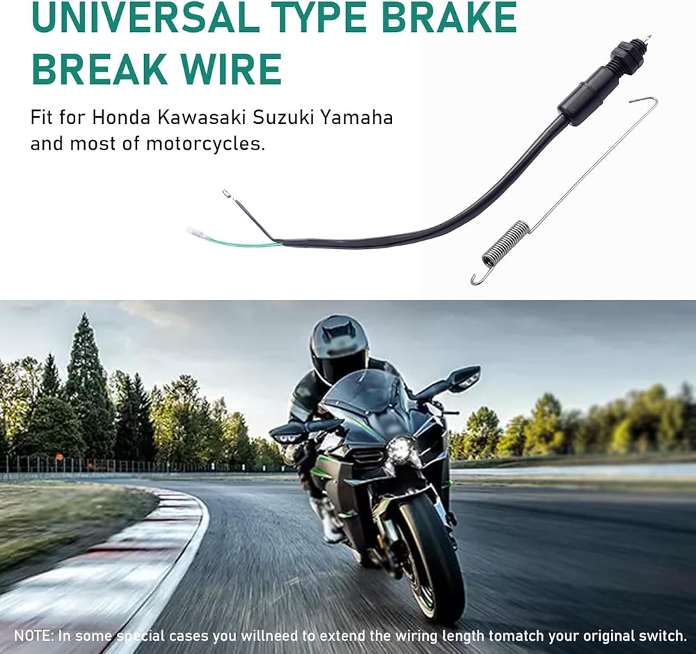 Widely Used: This brake switch cable is suitable for most motorcycles, including Honda, Kawasaki, Suzuki, Yamaha and other brands of motorcycles. Fits most motocross bikes, mopeds, scooters, dirt bikes, ATVs, go-karts, track bikes, racing or super bikes.