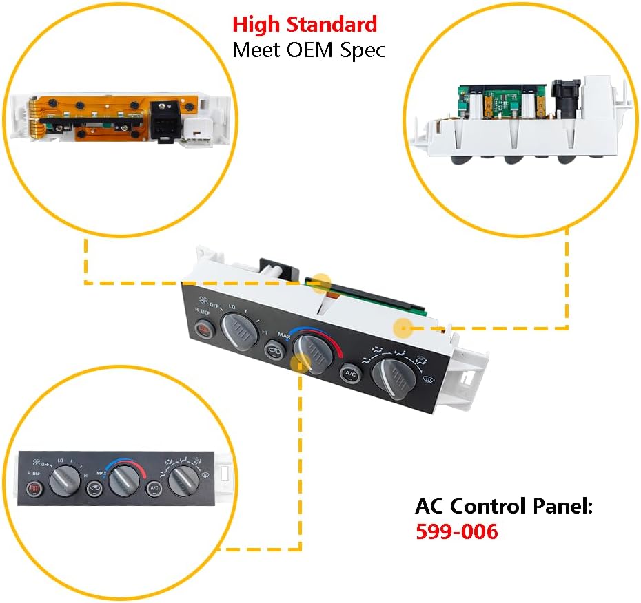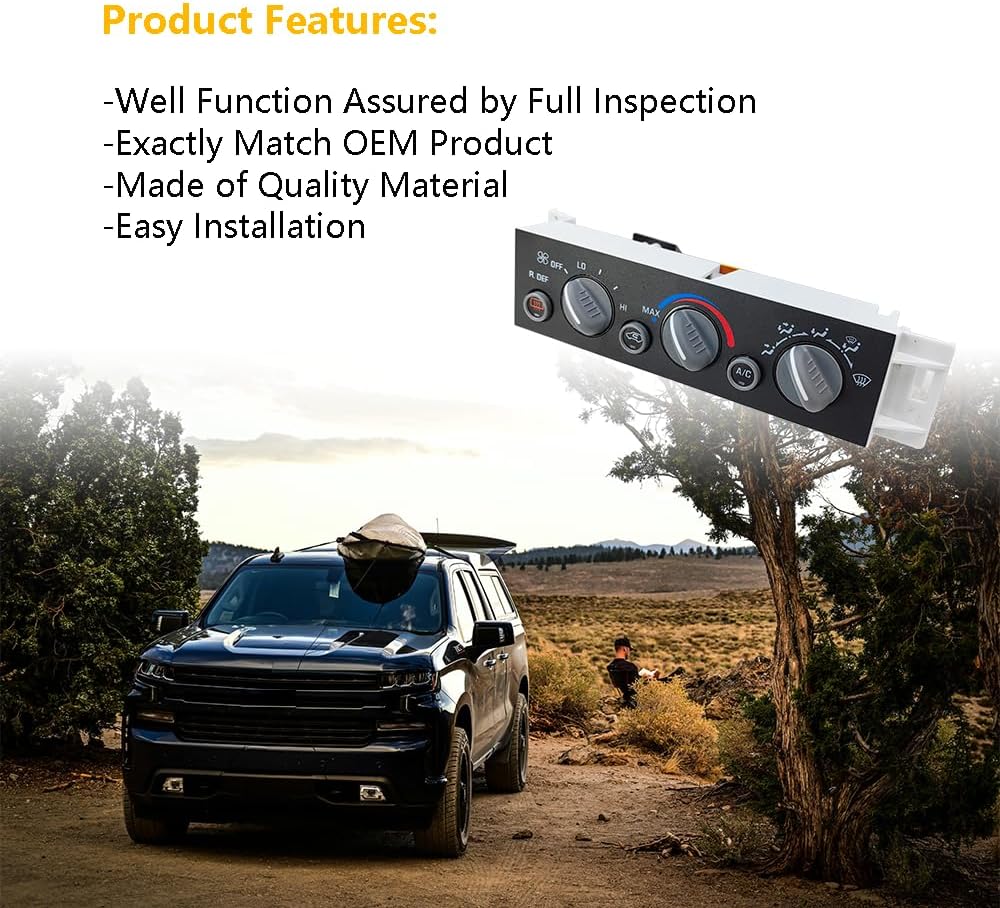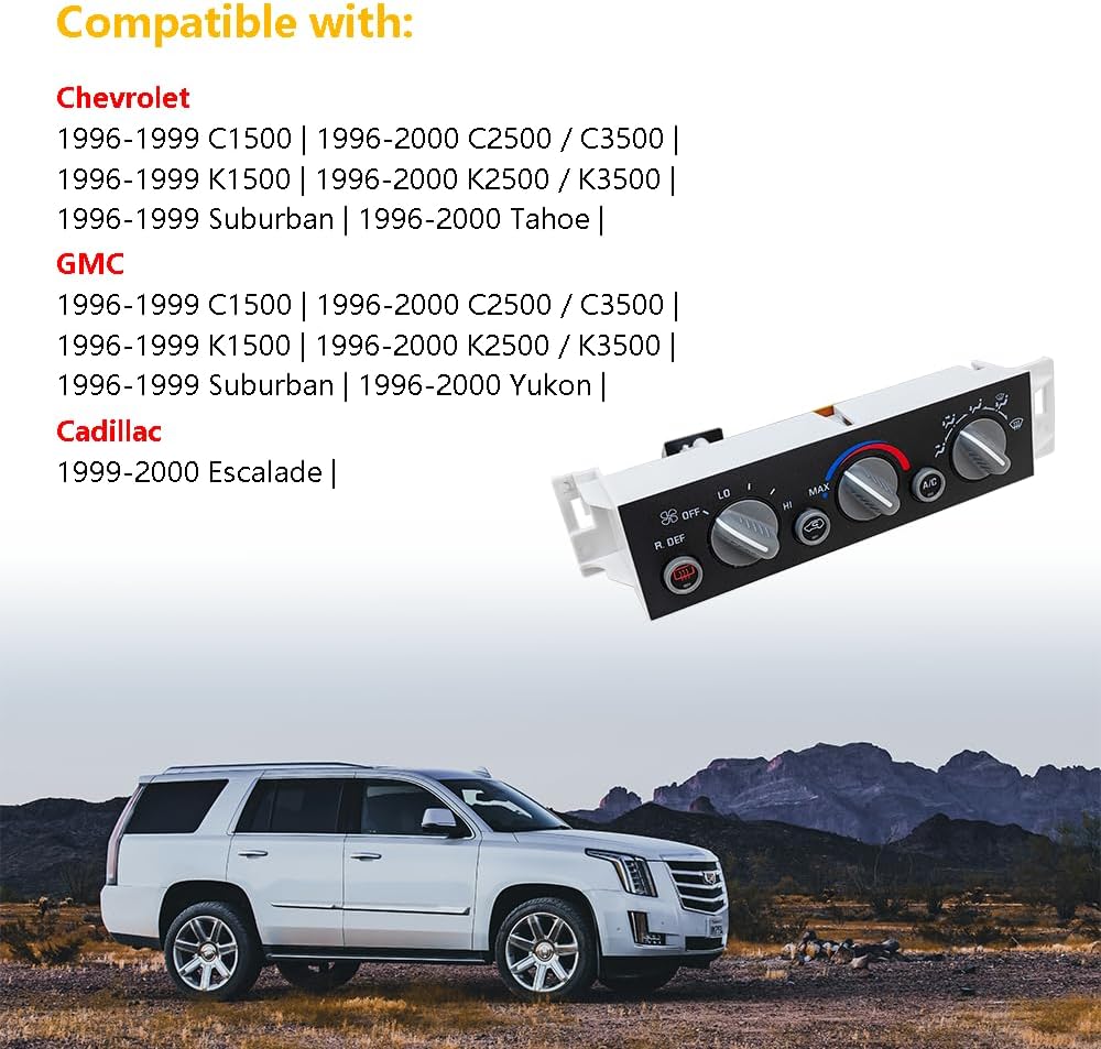 وحدة لوحة التحكم في سخان مكيف الهواء HVAC مع مفتاح مزيل الضباب للنافذة الخلفية | مناسب لسيارة Chevy C1500 C2500 C3500 K1500 K2500 K3500 سوبربان تاهو، جي إم سي يوكون، كاديلاك إسكاليد | عمر الفاروق 599006 9378805 1572547