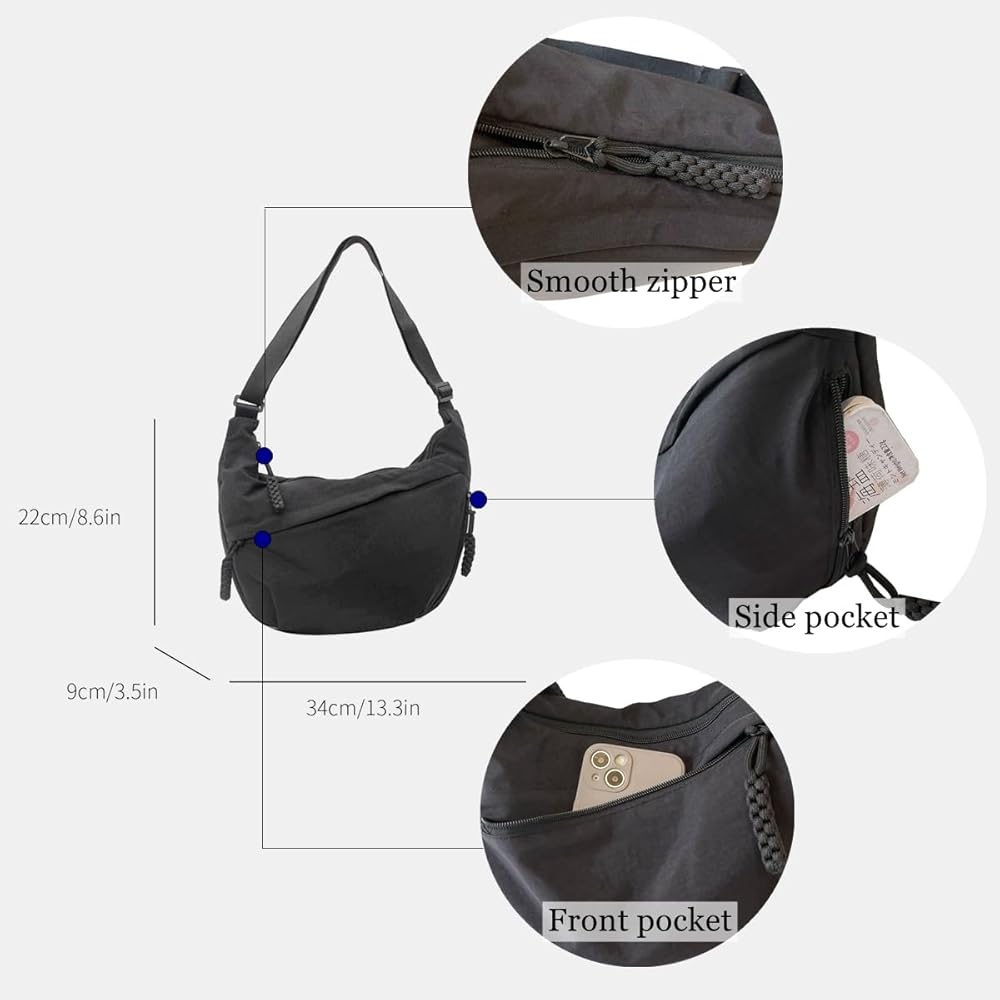 تصميم كلاسيكي وعملي: تتميز الحقيبة الهلالية ذات الألوان الصلبة بتصميم كلاسيكي بسيط. تتميز هذه الحقيبة التي تمر بالجسم بحجم مثالي للضروريات اليومية بدون حجم كبير. يمكنك بسهولة أخذ مفاتيحك ومحفظتك وهاتفك المحمول ونظاراتك الشمسية وما إلى ذلك معك.