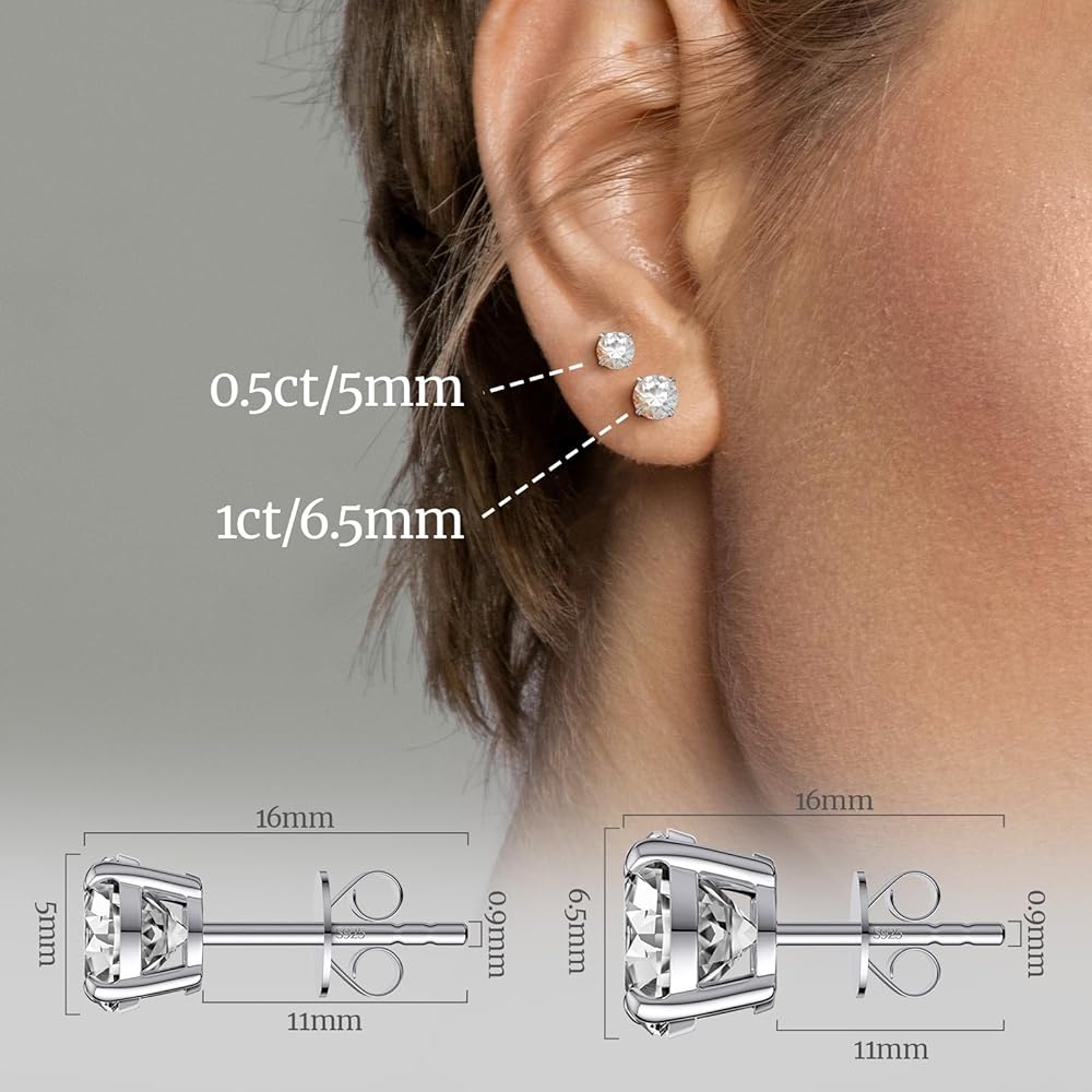 [مجوهرات فاخرة من أقراط الفضة الاسترليني المويسانتي] الحجم: 6.5 مم (1 قيراط) لكل منهما. إجمالي وزن الماس المويسانتي: 2 قيراط لكل زوج. المواد: فضة استرليني S925 مع طلاء من الذهب الأبيض مكون من 5 طبقات. تقدم SugarTang مجوهرات فاخرة لا تسبب الحساسية، مما يجعلها آمنة ومريحة للارتداء اليومي