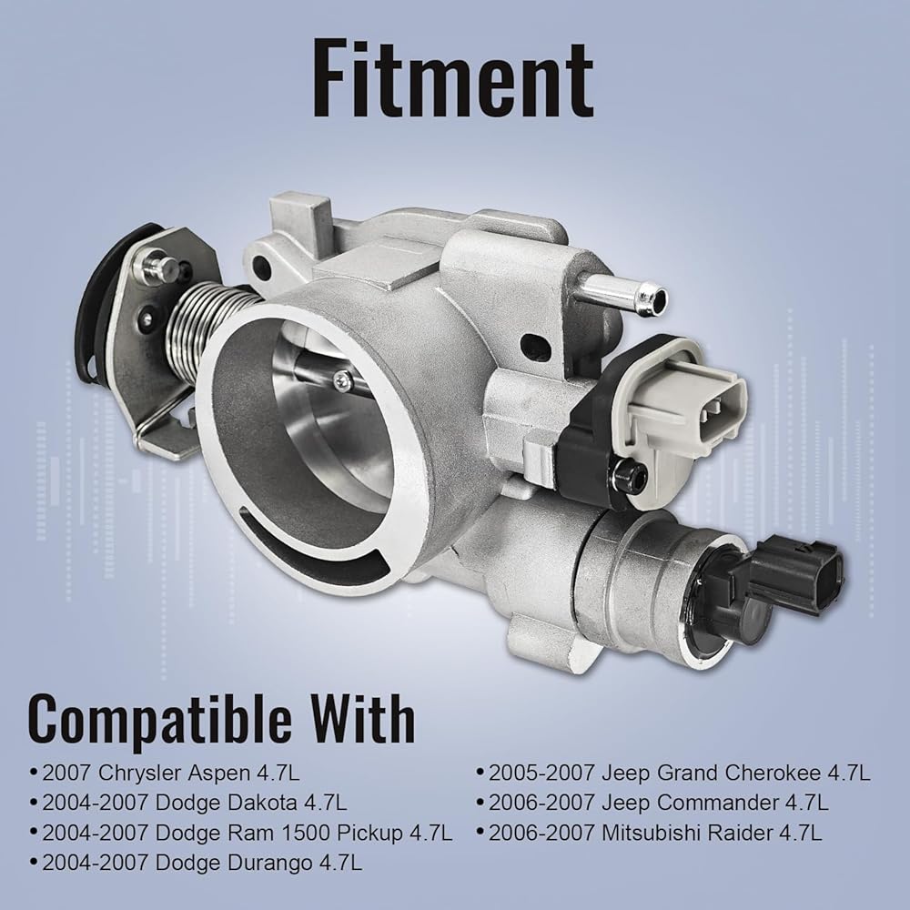 جسم خانق إلكتروني مناسب لمركبات كرايسلر ودودج وجيب - 4.7 لتر أسبن، داكوتا، رام 1500 بيك أب، دورانجو، جراند شيروكي، كوماندر يستبدل # 53032119AF، 337-05445
