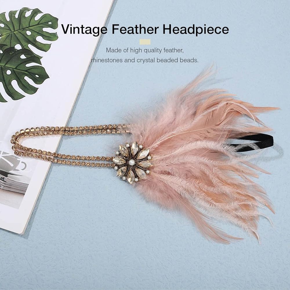 Feather 1920s headpiece with gorgeous feathers, perfectly match up with your flapper costume.add sophistication and glamour to any outfit, making it perfect for vintage parties or performance gigs.