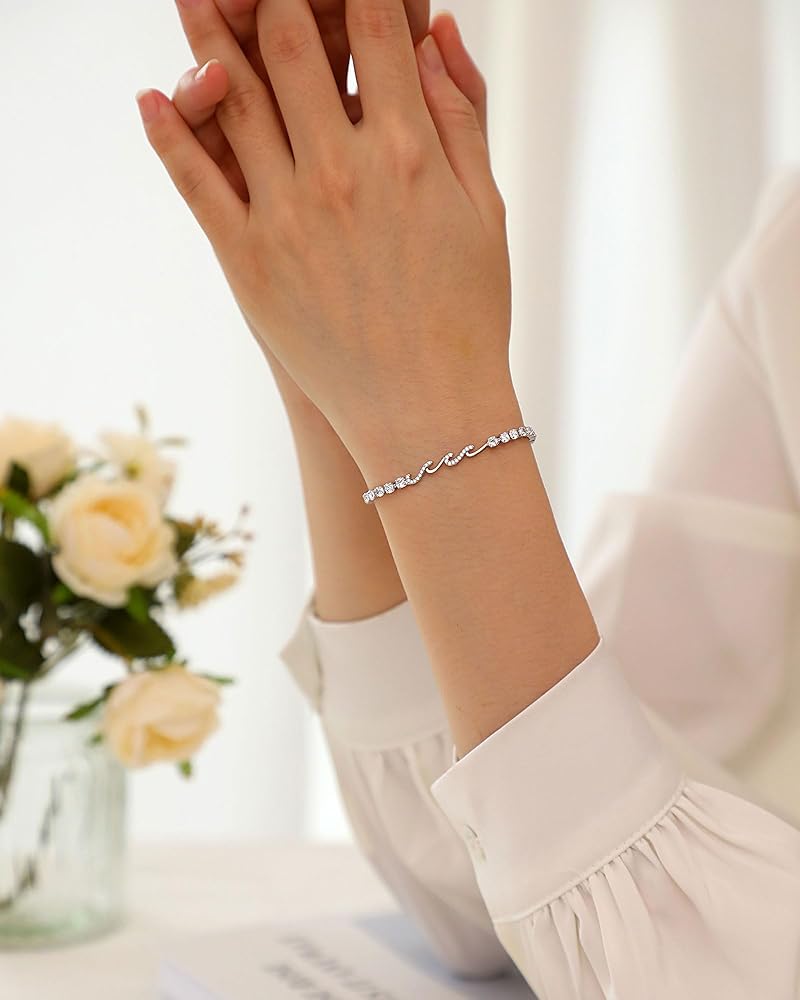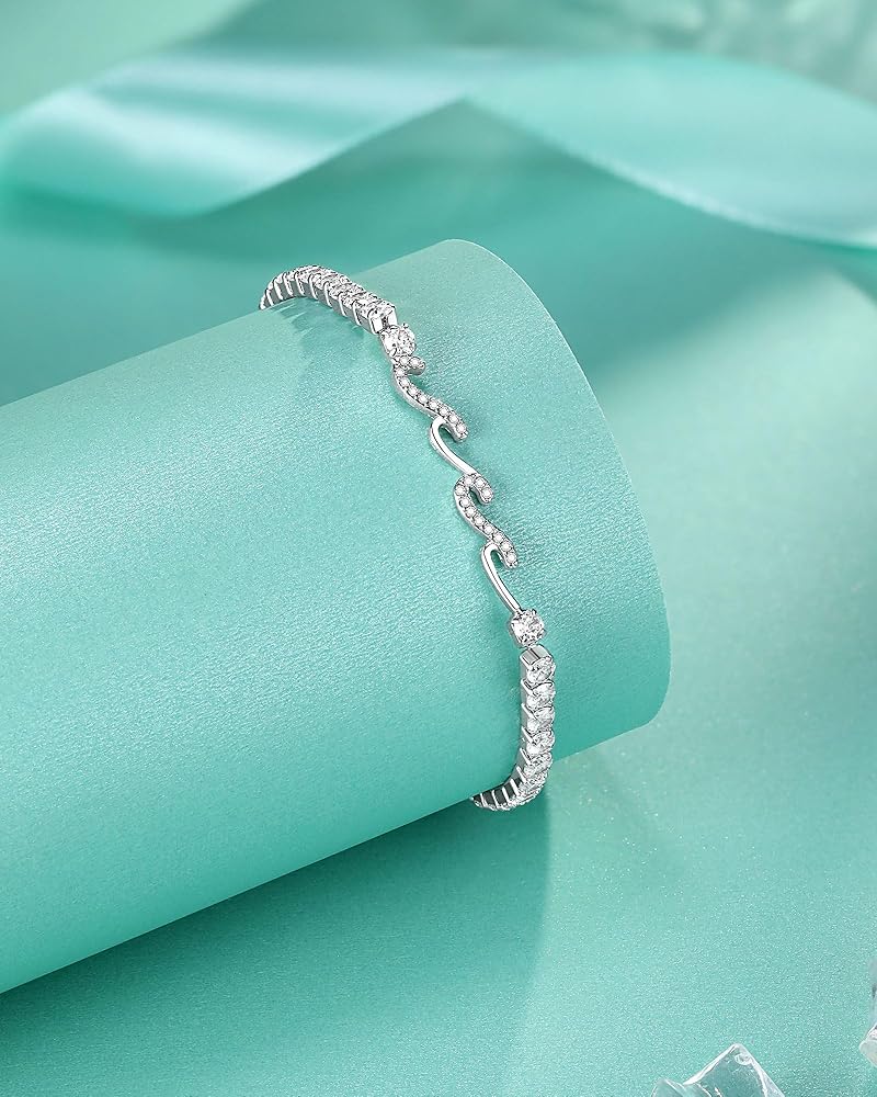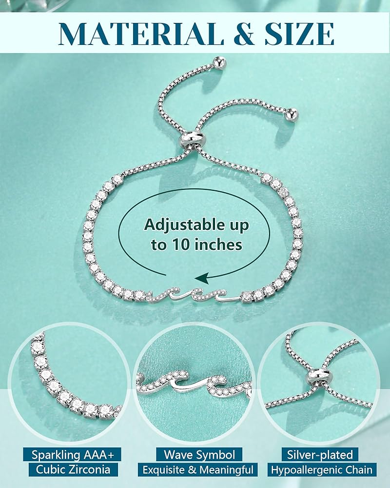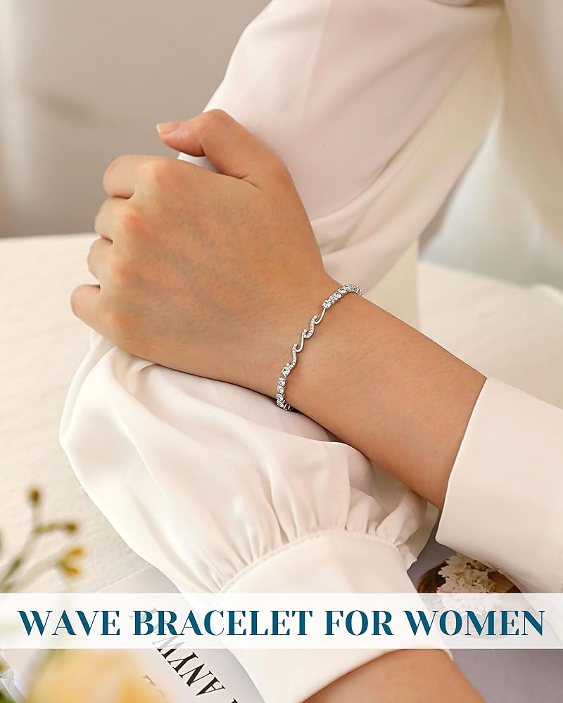 سوار أمواج الحياة -- مصمم برمز موجة، ومزين بالزركونيا المكعبة المتلألئة، مما يجعل هذا السوار يبدو أجمل. السلسلة المطلية بالفضة تجعلها مريحة في الارتداء.