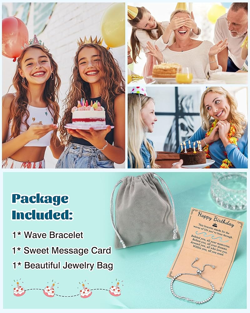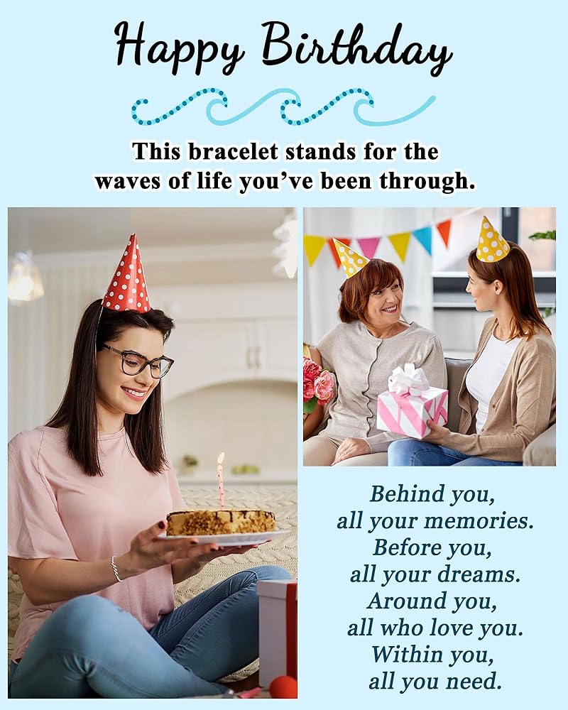 سوار عيد ميلاد للنساء - هذا السوار يمثل موجات الحياة التي مررت بها. وخلفك كل ذكرياتك. أمامك كل أحلامك. من حولك كل من يحبك. بداخلك كل ما تحتاجه.