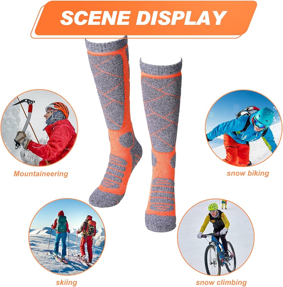 عملية ومريحة: تتميز جوارب الساق الدافئة للتزلج بسمك معين، دافئة وناعمة، وليس من السهل انزلاقها، ولها تأثير حراري جيد، حتى في الشتاء يمكن أن تبقي ساقيك دافئة وعملية ومريحة.