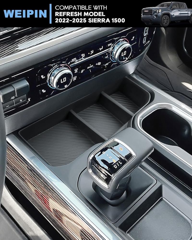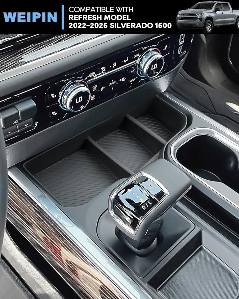 【𝐃𝐄𝐒𝐈𝐆𝐍 𝐅𝐎𝐑 𝐒𝐈𝐋𝐕𝐄𝐑𝐀𝐃𝐎】 وحدة تحكم كاملة مع مقاعد دلو فقط! ليس للمقاعد المقسمة. مصمم لسيارة سيلفرادو 1500 موديل 2023-2025 (LT، RST، LTZ، High Country، LT Trail Boss، ZR2، ZR2 Bison).