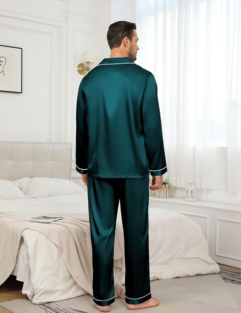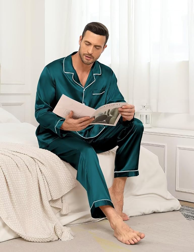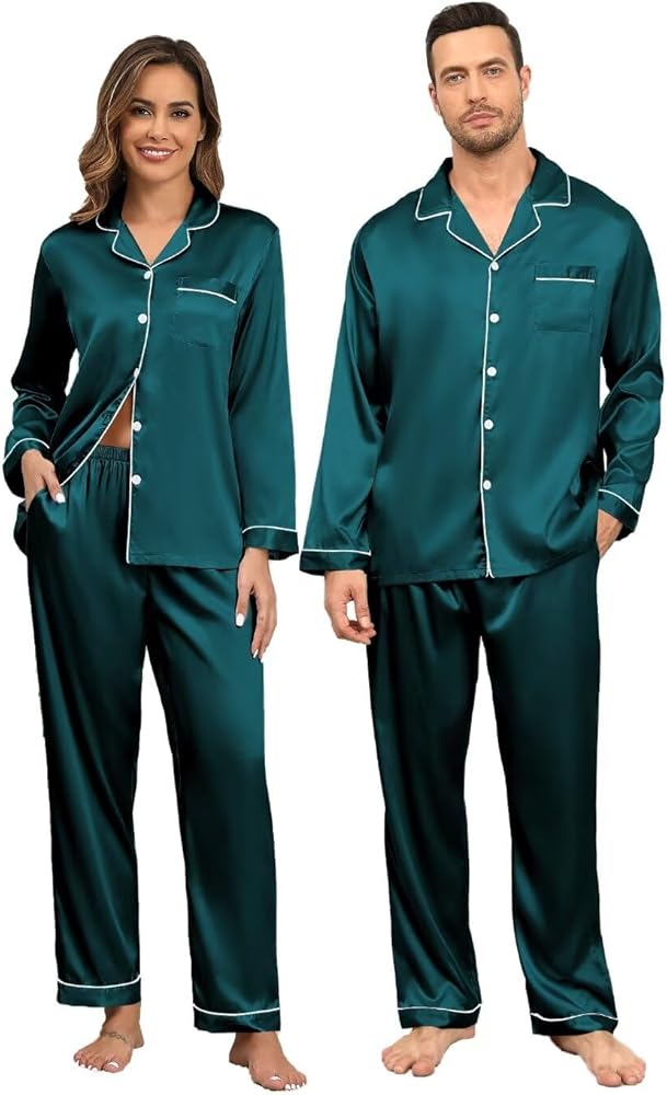 • المواد: طقم بيجامة من الساتان مصنوع من 95% بوليستر خفيف الوزن، 5% ألياف لدنة حريرية. ملابس نوم YOZLY حريرية فائقة النعومة للرجال والنساء. نصائح: تباع كل مجموعة من البيجامات المطابقة هذه بشكل منفصل، يرجى البحث عن "الرجال" " و"النساء"